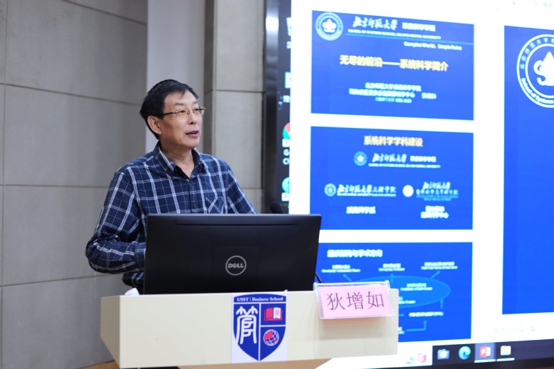 报告会上,狄增如教授以城市演化、气候系统、科学研究中的团队合作等若干研究为案例,基于复杂系统的视角,阐述其开展研究的线路以及部分研究成果。其研究通过对复杂系统涌现性的科学研究发现了纷繁多样的复杂现象背后,可能存在着简单的、普适的规律。他认为系统科学研究任重而道远,并期望各位学者在探索各类系统的结构、环境与功能的普适关系以及演化与调控的一般规律的同时,一定要在系统范式的基础上形成科学认识。