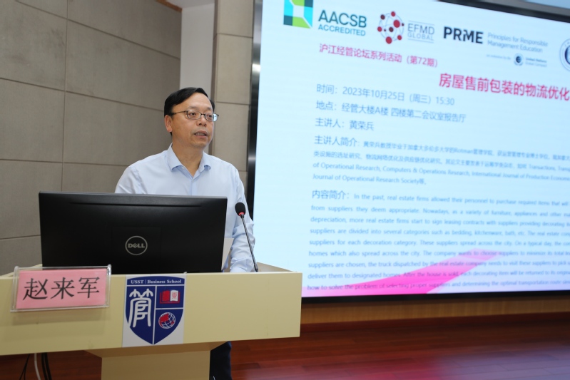 10月25日,加拿大约克大学黄荣兵教授为学院师生作题为“房屋售前包装的物流优化”的报告。报告由管理学院院长赵来军主持,100余名师生参加了报告会,现场座无虚席。