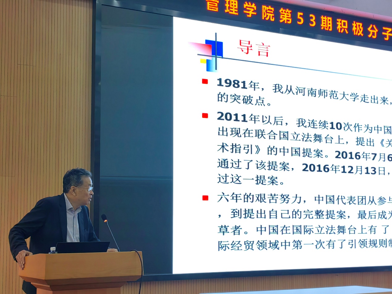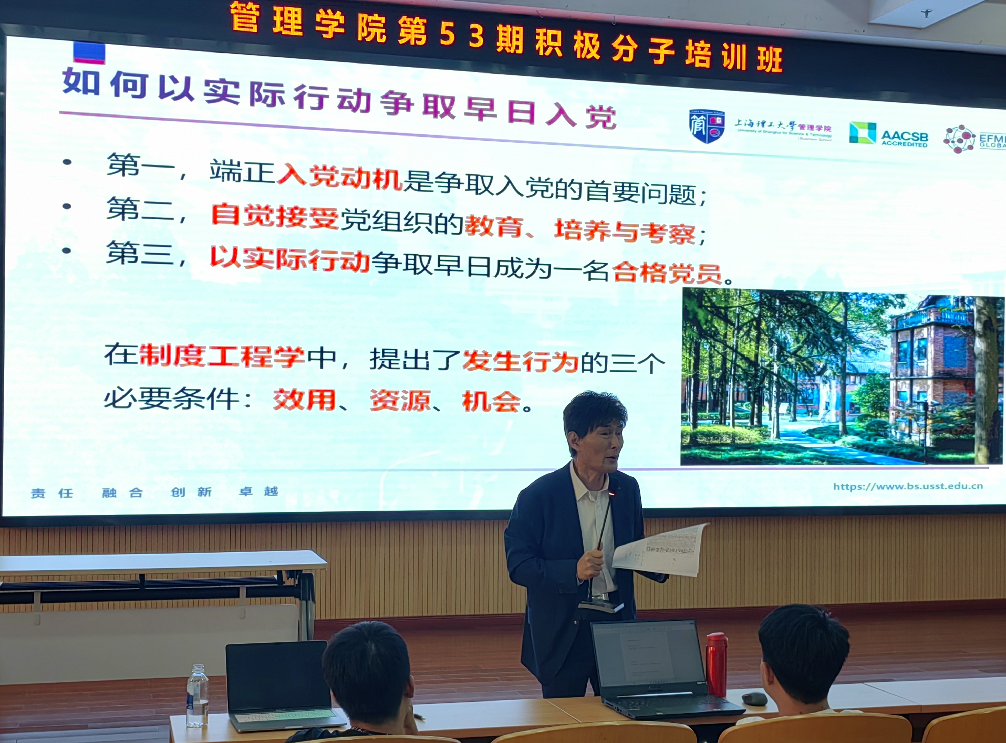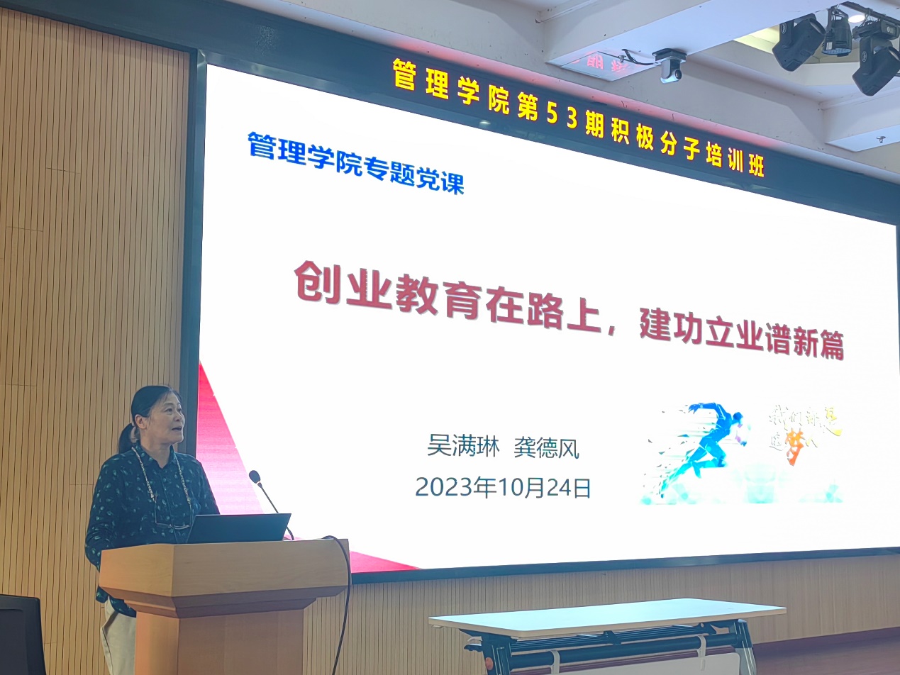 10月24日下午,管理学院第53期积极分子培训班第二讲在管理学院五楼第一会议室如期举行,此次培训以“我与老党员面对面”为主题,学院党委特别邀请了杨坚争、龚德风和王永联三位老党员同志来为本期培训班学员作分享交流。
