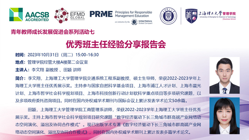 【2023年10月31日】青年教师成长发展促进会系列活动之优秀班主任经验分享会