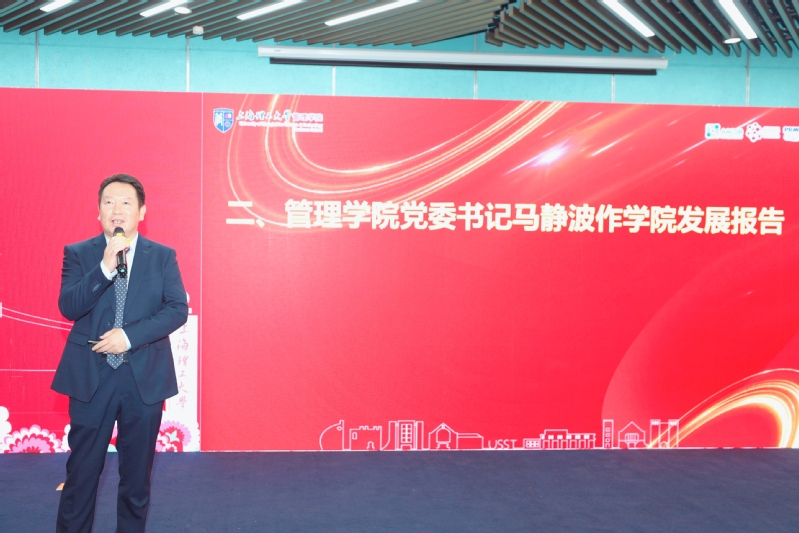管理学院党委书记马静波从学院基本情况、人才培养、科学研究、学科建设、国际化建设、文化及社会影响等六个方面作了学院发展报告,希望各位校友为母校发展建言献策,为建设国际一流精英商学院贡献广大校友的智慧与力量。