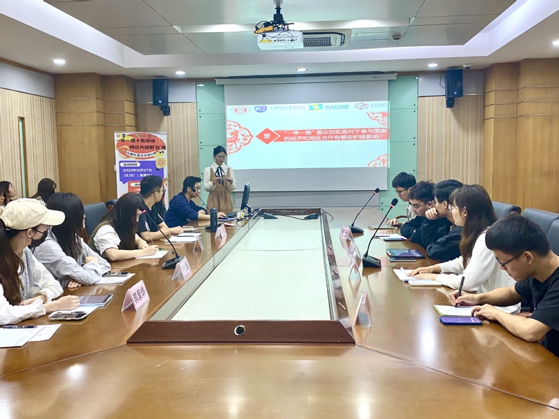 本次头脑风暴活动围绕“一带一路十载辉煌,畅谈共建新‘丝’路”这一主题展开。与会同学就“一带一路”倡议的实施对参与国家的经济和地区合作的影响、实施过程中的难题和挑战、“一带一路”对全球经济格局的影响等方面的内容进行了深入讨论。针对“一带一路”倡议的实施对参与国家的经济和地区合作的影响,23级工商管理的周凯同学发表了自己的见解:“一带一路”通过促进基础设施建设和加强国际贸易联系,改善了相关国家的交通网络,降低了贸易成本,创造了大量就业机会,显著推动了经济增长,同时加强了不同国家和地区之间的联系与合作,促进了区域一体化,提升了文化交流和安全合作水平。23级工商管理的李梅同学谈了“一带一路”的实施遇到的难题和挑战方面的看法:“一带一路”倡议虽然促进了全球经济合作和地区发展,但仍面临多重挑战,包括发达国家的贸易壁垒、地缘政治与安全风险、文化差异等;这些问题突显了国际合作的复杂性,需要相关国家共同努力,通过加强政策协调、完善法律环境、增进文化理解等手段,推动倡议的深入发展。23级应用经济学的郭紫烨同学分享了“一带一路”对全球经济格局的影响方面的观点:“一带一路”倡议通过深化与发展中国家的合作,提升了亚欧非之间的贸易效率,有潜力转变全球贸易中心,推动经济多极化;倡议在实施中存在债务风险和项目可持续性的问题,强调了提升透明度和加强治理的必要性。活动持续了一个小时多小时,与会同学投入了积极参与和讨论,不同的观点在这里碰撞、交融。