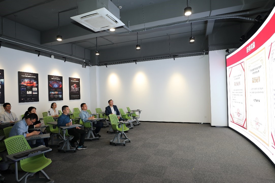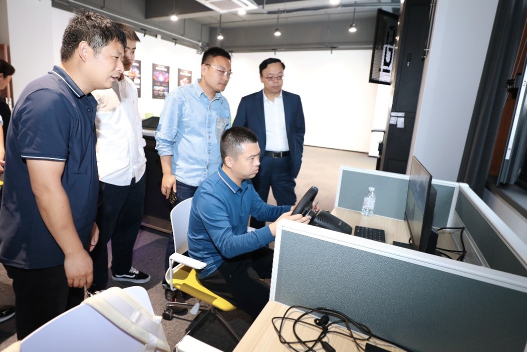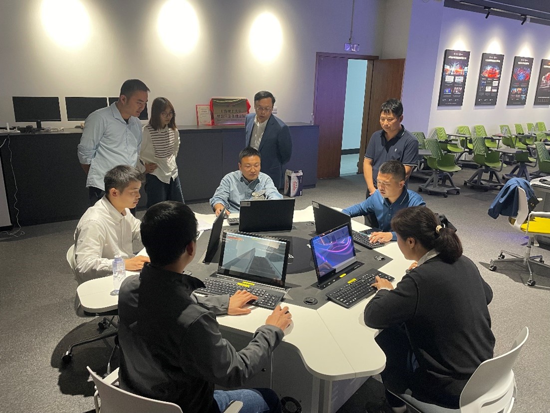 李季明、陈潇潇向到访人员介绍并演示了VR科普系统、石油化工实训系统、浦东机场实训系统、对抗沙盘演练系统等教学实训平台。