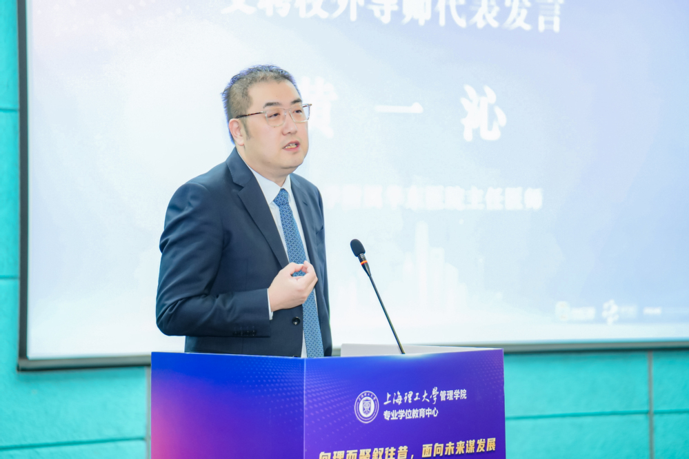 马静波致答谢辞,感谢各位受聘导师对管院MPA教育的支持。他强调,上海理工大学MPA校外导师聘任仪式的顺利举办,充分展现了学院多学科交叉融合的办学实力,为打造MPA “校、政、企三融合”育人特色,培养服务中国式现代化建设的新时代公共管理人才。