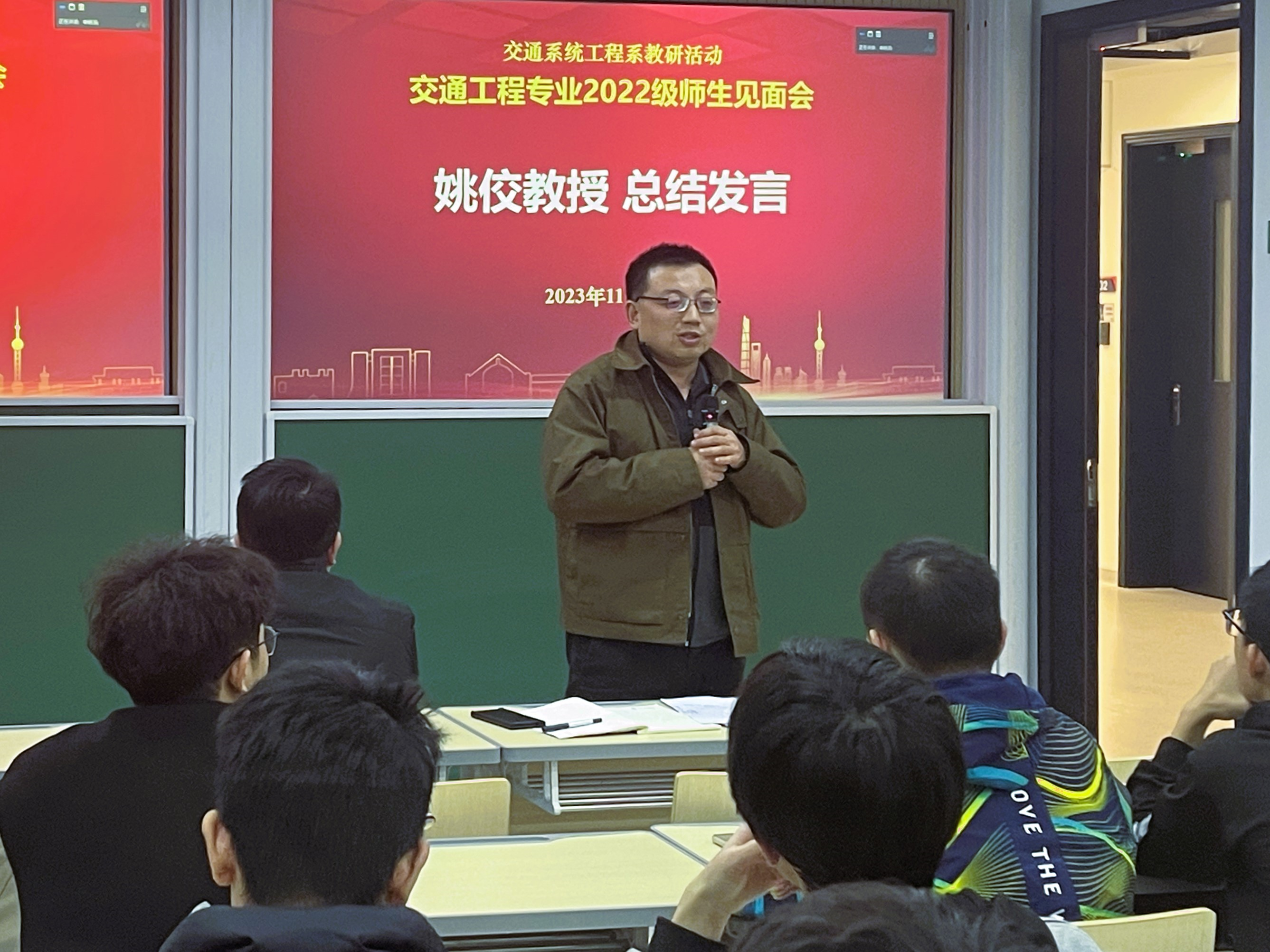 11月13日晚上,2022级交通工程本科专业师生见面会在第四教学楼203顺利举行。会议由班主任李文翔副教授主持,交通运输工程学科带头人韩印教授、交通系统工程系党支部书记姚佼教授、交通工程本科专业负责人王嘉文副教授、交通系统工程系教师代表、全体2022级交通工程专业本科生以及部分2023级新生参加了此次会议。