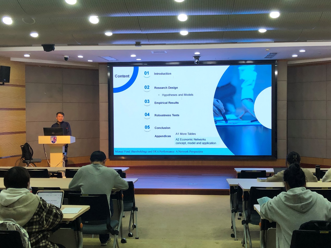 11月15日,沪江经管论坛系列活动(第75期)在经管大楼A楼四楼第二会议室报告厅举行。金融系副教授李冰作题为“基金持股与DEA效率:网络视角下的研究”的学术报告。管理学院相关学科师生参加了此次报告。