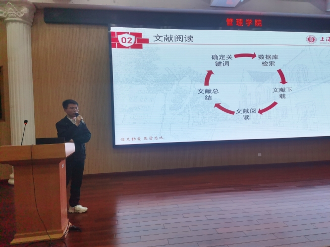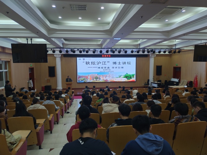 2023年11月15日,“1+x+N”博硕贯通计划暨“秋炫沪江”博士讲坛活动在管理学院第一会议室成功举办。2023年国家奖学金获得者、管理学院2021级博士研究生周青超与2021级硕士研究生杨亮受邀参加讲坛,他们结合自己获评国奖的经历和体会,和同学们分享了学习科研经验,两百余名师生参加了讲座,现场座无虚席。