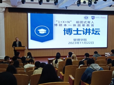 榜样者,楷模也。为汲取榜样力量,传承学术精神,2023年11月22日,管理学院举办第二场“1+x+N”博硕贯通计划暨“秋炫沪江”博士讲坛活动。此次活动由管理学院2023年国家奖学金获得者、2021级博士生董雅芳和2021级硕士生陈翔做主讲报告,管理学院2023级硕士研究生与会。
