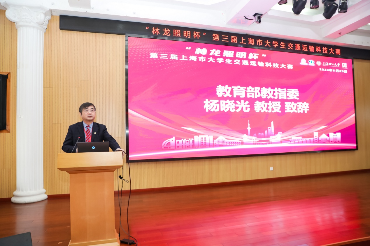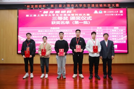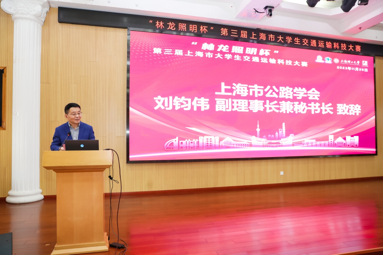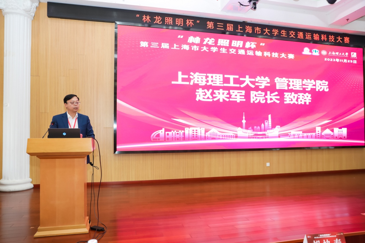 11月25日,由上海市公路学会和上海市交通工程学会主办,教育部高等学校交通运输类专业教学指导委员会专家支持,上海理工大学承办,上海林龙建设工程有限公司、上海市公路学会道路安全与环境专业委员会及道路工程专业委员会、上海市交通工程学会交通理论专委会协办的“林龙照明杯”第三届上海市大学生交通运输科技大赛决赛在上海理工大学管理学院举行,上海理工大学交通运输工程学科发展专题研讨会同期开展。出席决赛和会议的有来自上海市公路学会、上海市交通工程学会、同济大学、上海城建城市运营(集团)有限公司、上海市城市建设设计研究总院(集团)有限公司、上海市交通信息中心、上海市城市综合交通规划研究所、上海市上规院城市规划设计有限公司、上海城市交通设计院有限公司、等交通行业相关单位的十五位校外评审专家,上海理工大学管理学院院长赵来军,教师发展中心主任童元伟,交通运输工程学科带头人韩印,交通系统工程系的师生代表以及所有参赛成员。决赛开幕式由上海理工大学管理学院副院长赵靖主持。
