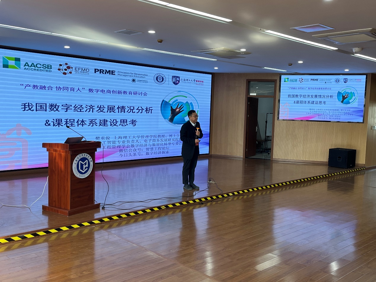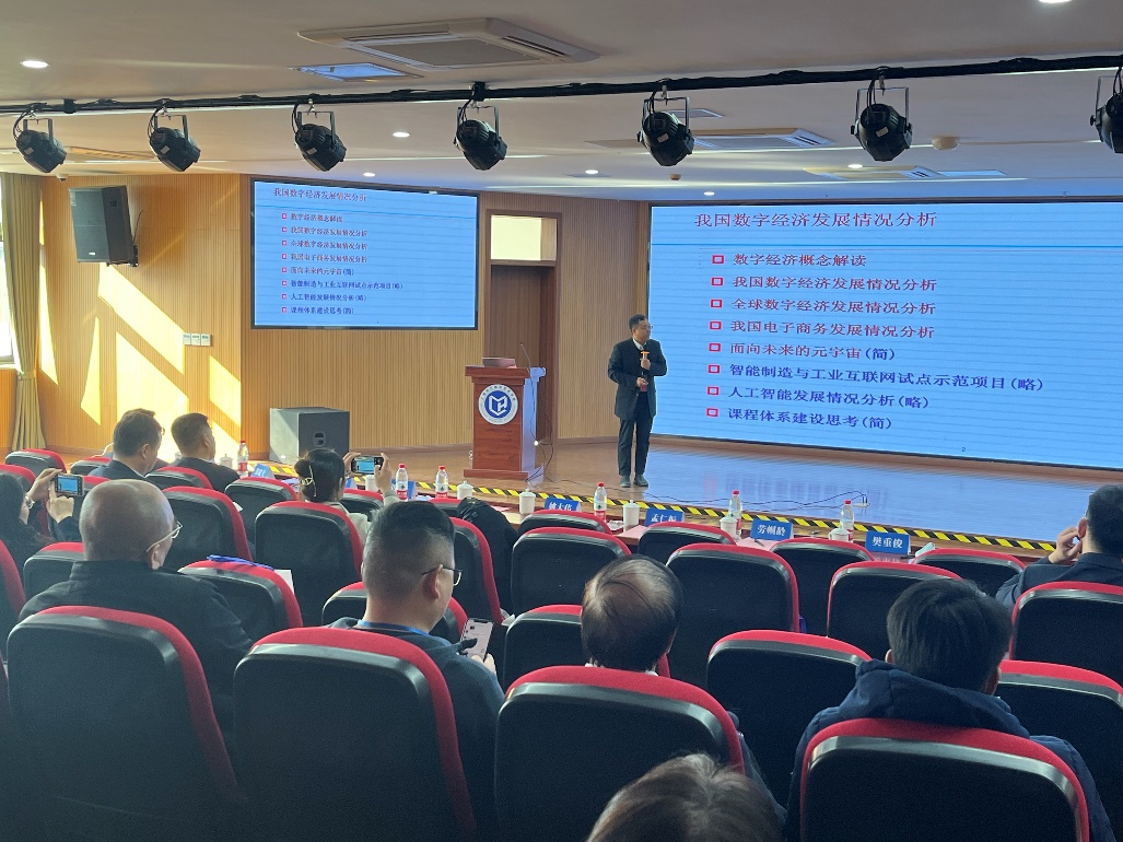 我院信管系主任、人工智能专业负责人、电子商务发展研究院院长樊重俊应邀在研讨会上进行题为“我国数字经济发展情况分析&课程体系建设思考”的主旨报告。