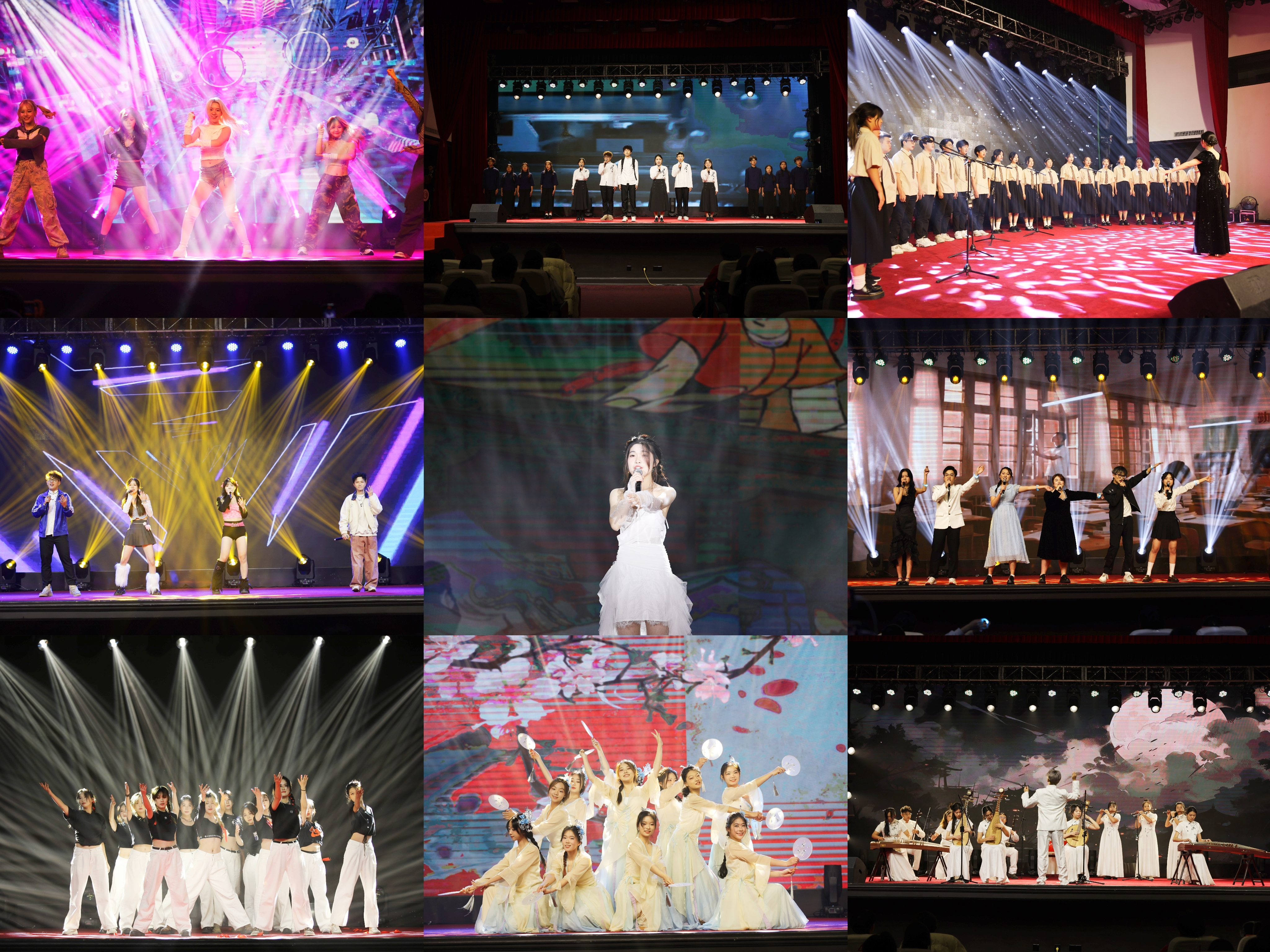 晚会上,各类节目精彩纷呈,在师生们几个月的不懈努力、精心准备下,为全体观众呈现出一场无与伦比的视听盛宴:诗歌朗诵《热风》似乎是我们与前辈的对话,以青年之志展青春之诗;器乐表演《象王行》,各类器乐或庄重威严,或深远辽阔,或优雅绵长;一凡脱口秀既有校园式的幽默风趣,又带来许多感悟与思考;民族舞《能不忆江南》舞出江南四月的生机盎然……