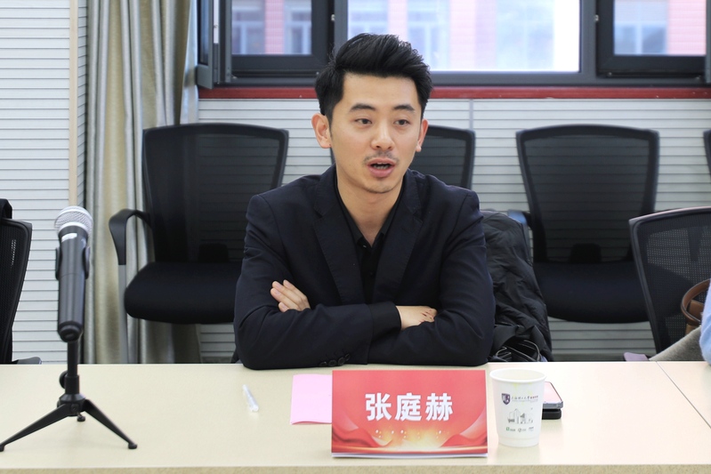 张庭赫介绍了胧爱集团十年来的发展历程,他表示胧爱集团缘起于高校、成长于高校、发展于高校,在科创比赛方面积累了丰富的经验和资源,愿意在创青春、互联网+、挑战杯等青年科创大赛方面进一步加强与学院的合作,助力学院教育事业的发展。