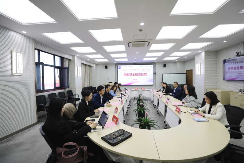 12月14日下午,胧爱集团“青创基金”捐赠仪式在管理学院506会议室举行,胧爱集团总裁、上海庭赫信息科技有限公司总经理张庭赫,胧爱集团常务副总裁马偲琪、联合创始人刘宇,管理学院党委书记马静波、院长赵来军,校友联络处副处长司徒唯尔及校企双方相关代表出席会议。会议由管理学院党委副书记蒲莹莹主持。