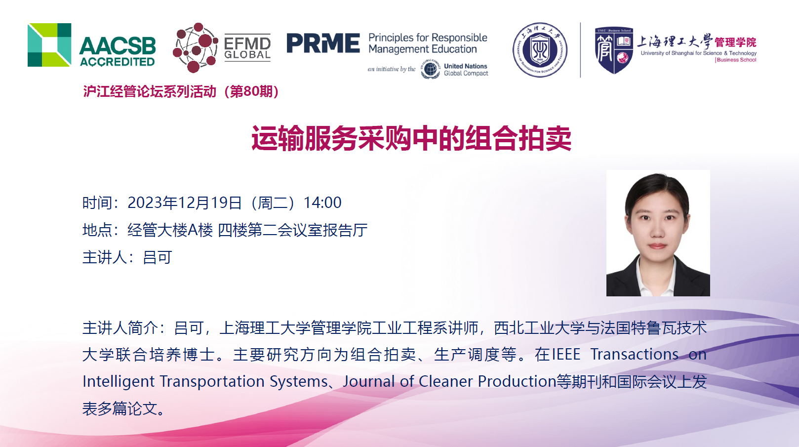 沪江经管论坛系列活动(第80期):运输服务采购中的组合拍卖