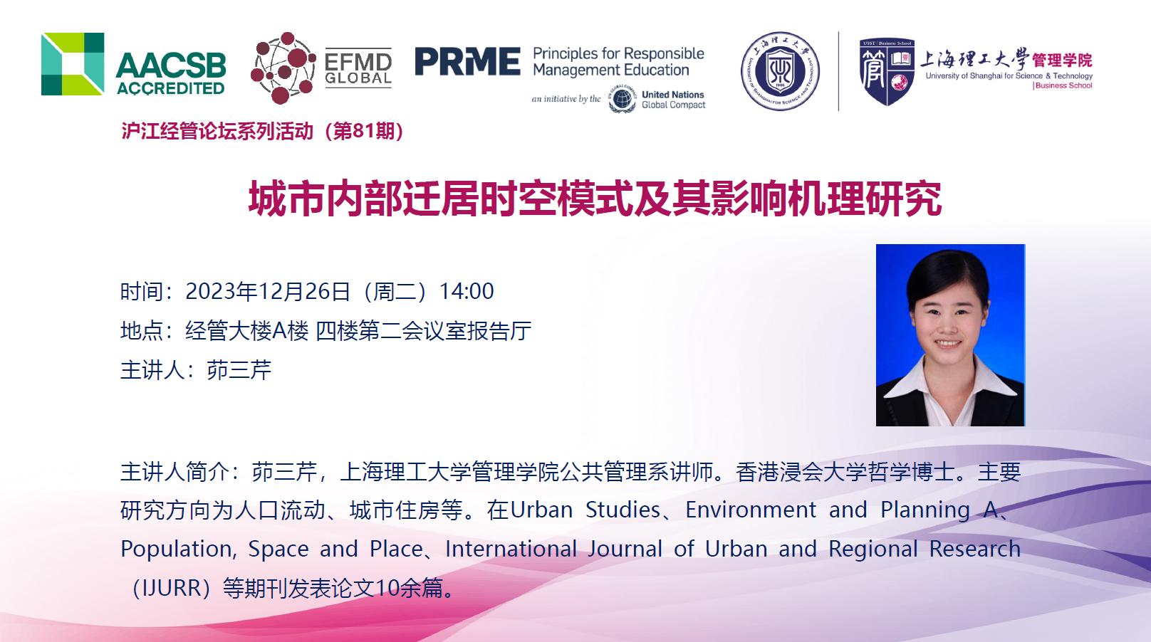 沪江经管论坛系列活动(第81期):城市内部迁居时空模式及其影响机理研究
