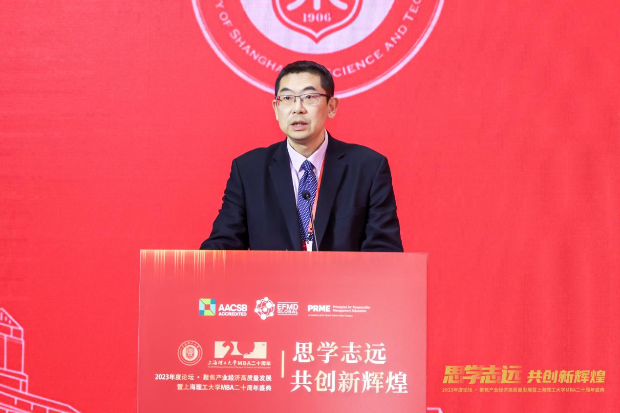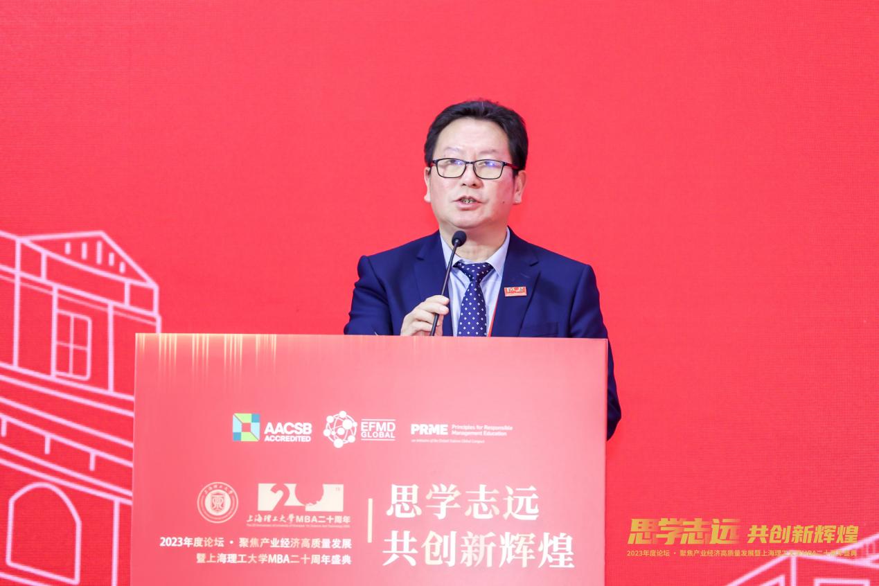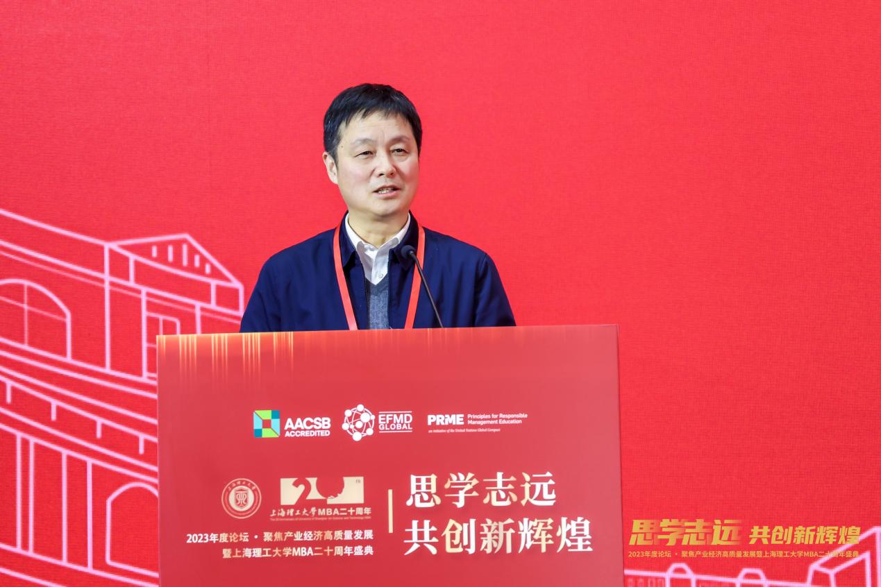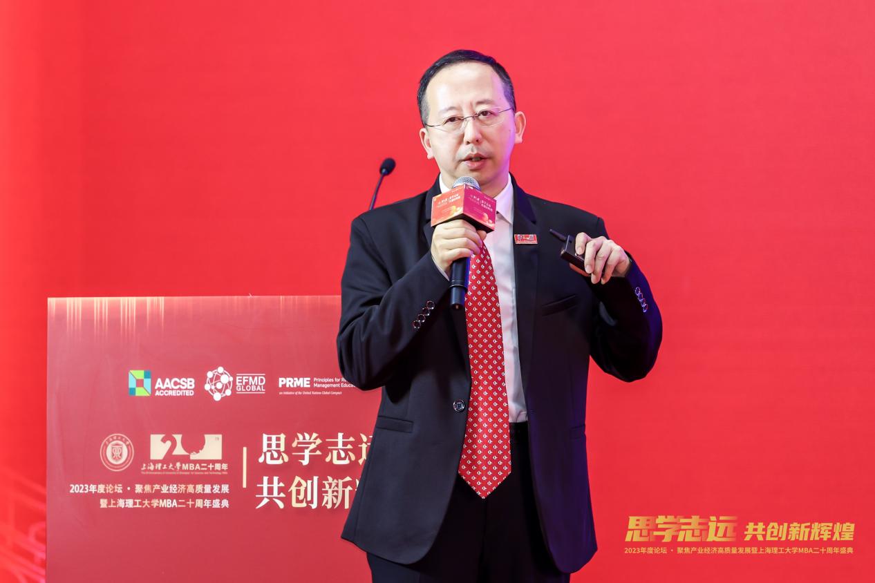 丁晓东在致辞中对各位嘉宾的到来表示热烈欢迎和由衷感谢,回顾了上理MBA办学20年来的发展历程和卓越成就,对管理学院通过AACSB等国际认证,“以认促建”所取得的成绩表示肯定。他指出,学校始终发扬“依托行业、产学研相结合”的办学传统,坚持“服务社会、造福人类”的办学宗旨。未来,上理将不断加强MBA教育培养模式:一是优化课程设置,引进国际先进教学方法和手段;二是要借助优势学科,医工交叉和人工智能学科领域的发展,服务国家重大战略和产业转型升级;三是加强与企业的紧密合作,深化产教融合,持续推动上理MBA教育的高质量发展。