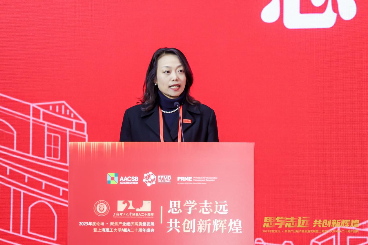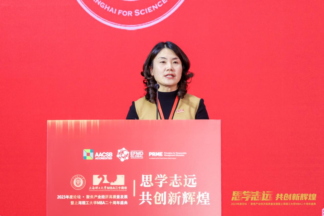许鑫代表上海工商管理学位研究生教育指导委员会对上理MBA办学20周年表示祝贺。充分肯定了20年来上理MBA在人才培养、产教融合和企业转型升级等方面硕果累累。希望上理MBA不忘初心、砥砺前行,再创佳绩。