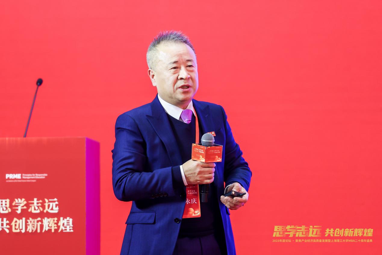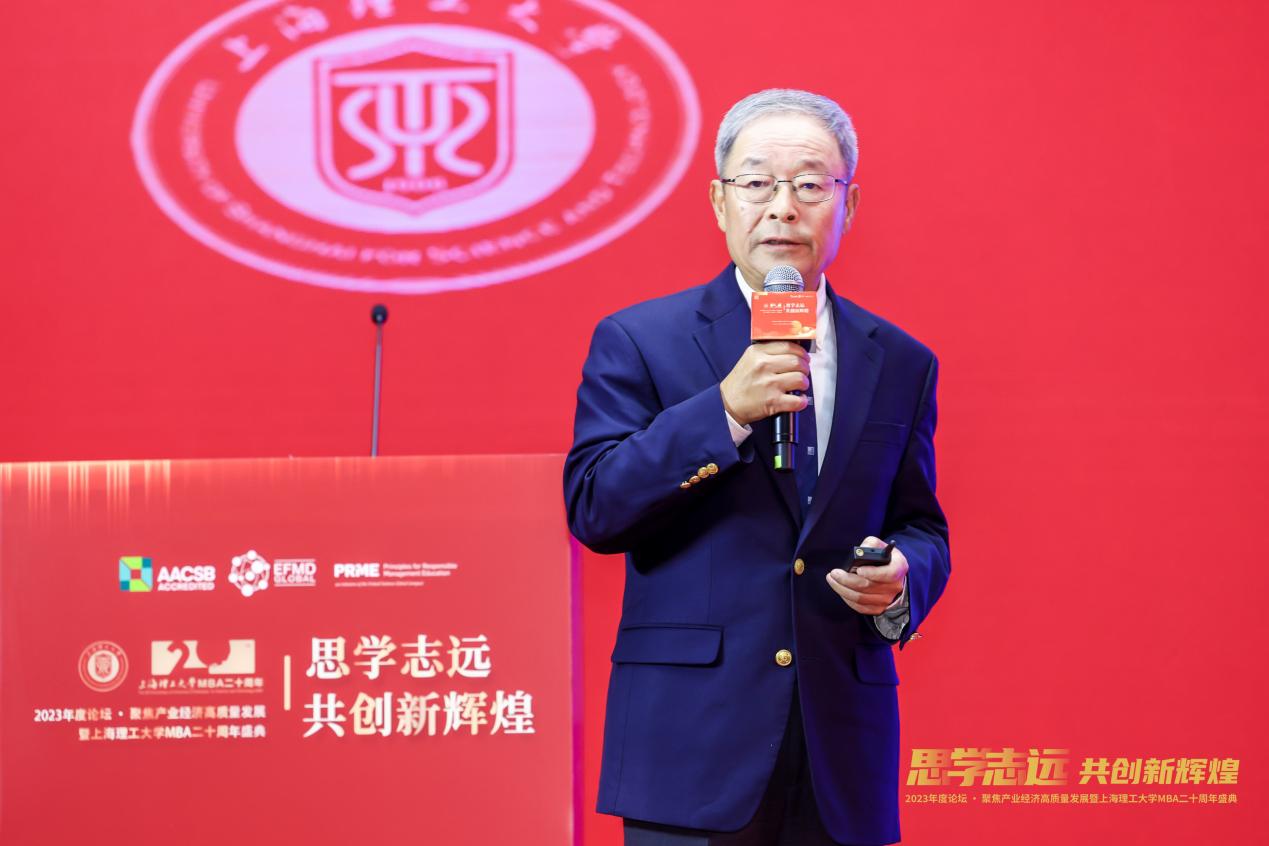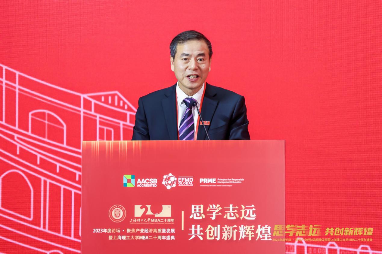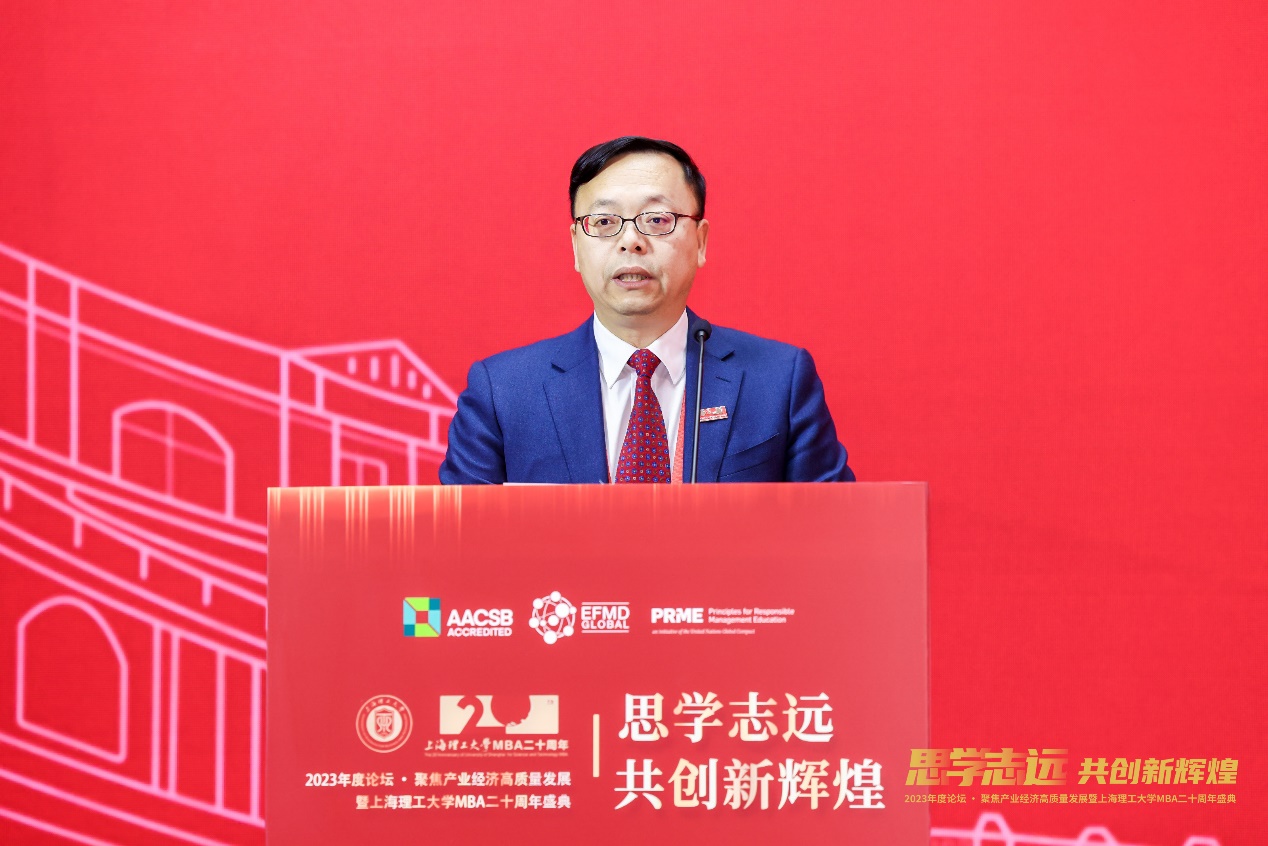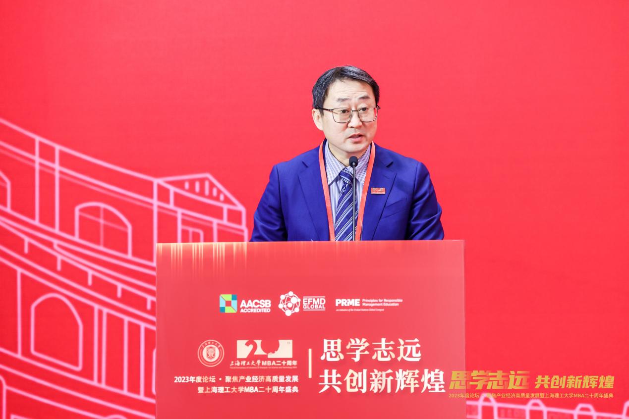 12月23日下午,由上海理工大学管理学院专业学位教育中心主办“思学志远,共创新辉煌”2023年度论坛•聚焦产业经济高质量发展暨上海理工大学MBA二十周年盛典在上海西郊会议中心举办。上海理工大学校长丁晓东,校党委副书记、副校长盛春,上海工商管理学位研究生教育指导委员会秘书长许鑫,长江商学院代理院长阎爱民,上海联和投资有限公司董事长秦健,校友联络处副处长司徒唯尔,管理学院党政领导出席。管理学院师生代表及历届MBA校友等200余人参加活动,共襄盛举、共商发展、共同见证这一历史时刻。