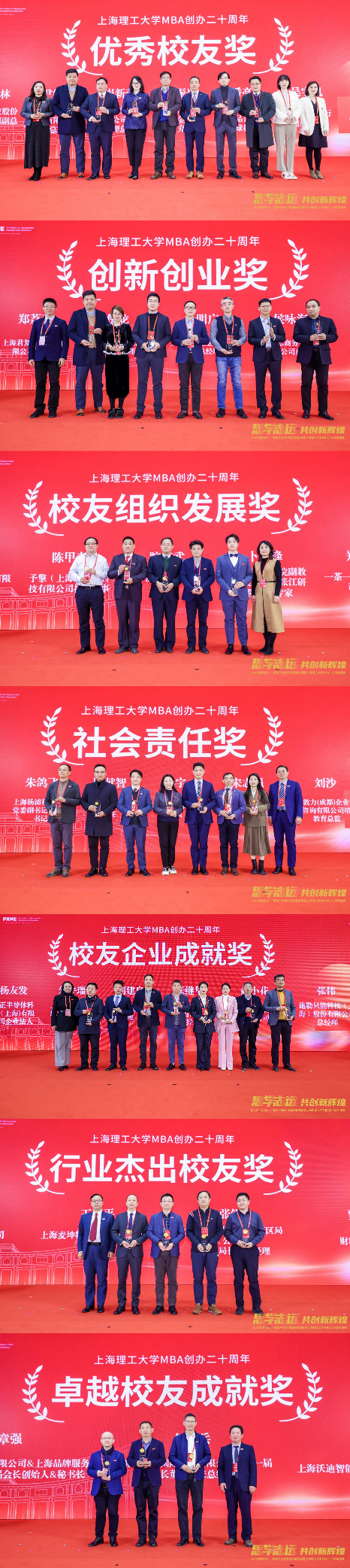 为表彰在上理MBA项目运营过程中,具备前瞻性思维,做出突出贡献的领导者,致敬众多具有责任担当、勤勉务实的校友,根据前期评选结果,盛典上颁发了“卓越领袖奖”“卓越运营奖”“优秀校友奖”“创新创业奖”“校友组织发展奖”“社会责任奖”“校友企业成就奖”“行业杰出校友奖”“卓越校友成就奖”九大奖项。原全国MBA教育指导委员会委员,首任上海理工大学MBA中心主任顾宝炎荣获“卓越领袖奖”,第二任主任赵洪进荣获“卓越运营奖”。本章节由管理学院党委书记马静波主持。
