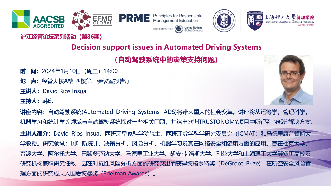 沪江经管论坛系列活动(第86期):Decision support issues in Automated Driving Systems