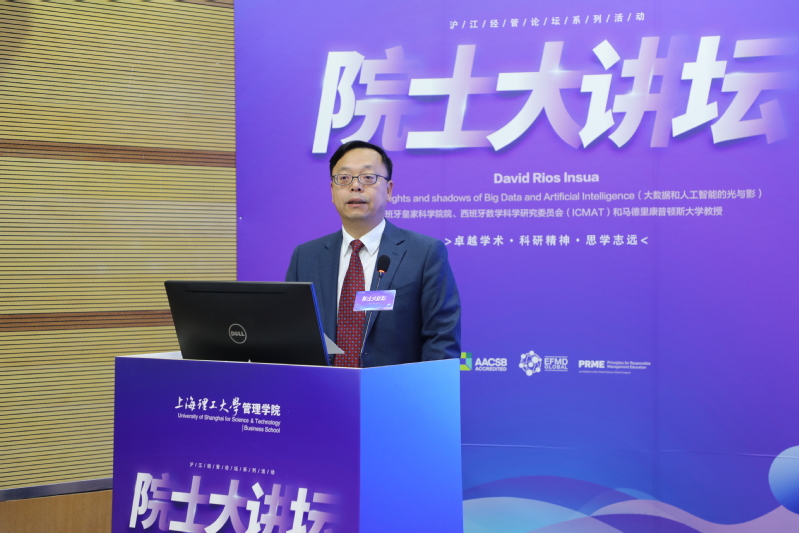 1月4日下午,管理学院邀请西班牙数学科学研究委员会(ICMAT)主席、西班牙皇家科学院David Rios Insua院士做“Lights and shadows of Big Data and Artificial Intelligence(大数据和人工智能的光与影)”为主题的讲座。报告会由管理学院院长赵来军主持。