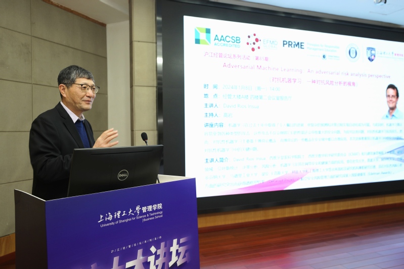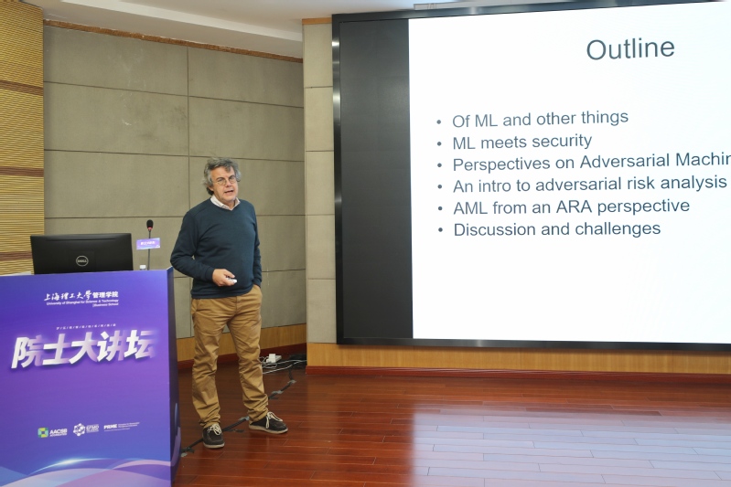 1月8日下午,管理学院邀请西班牙数学科学研究委员会(ICMAT)主席、西班牙皇家科学院David Rios Insua院士在我校经管大楼第二会议室报告厅作题为“Adversarial Machine Learning:An adversarialrisk analysis perspective(对抗机器学习:一种对抗风险分析的视角)”的学术报告。会议由系统科学学科带头人高岩主持。