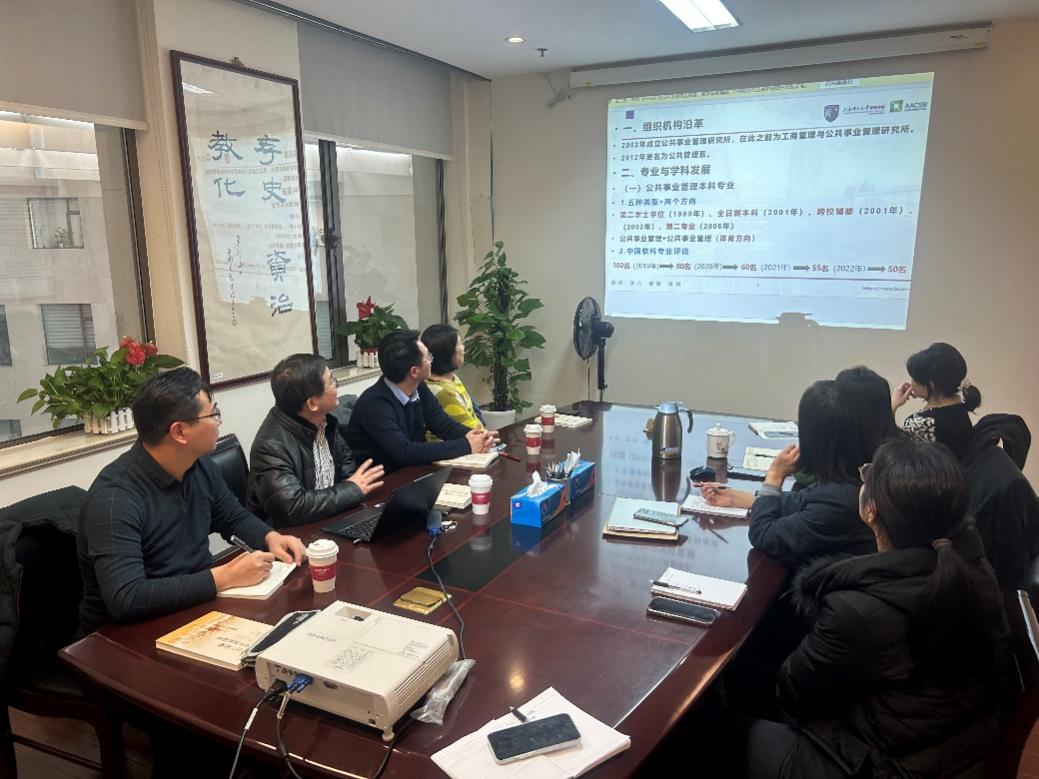 座谈会上,刘魏巍向对方介绍了上海理工大学管理学院及交通系统工程系的学科建设、平台资源、团队成员等基本情况,并重点展示了团队在城市治理、交通规划、低碳转型等方面的研究成果与实践案例。朱水成主要介绍了公共管理系的历史沿革、专业特点、研究方向等基本情况,并重点展示了团队在资政专报、决策咨询等方面的突出成绩。董洁霜、李文翔结合各自的研究方向,提出了双方联合开展前沿性课题研究、人才培养、成果转化的合作设想。
