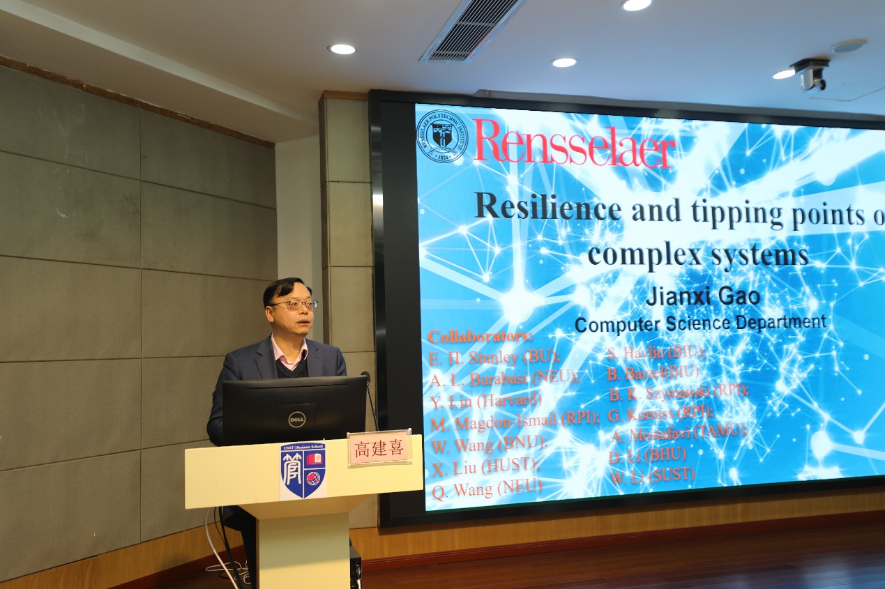1月11日下午,管理学院邀请伦斯勒理工学院计算机科学系高建喜教授做“Resilience and tipping points of complex networks(复杂网络的弹性和临界点)”为主题的报告。上海理工大学系统科学学科创始人车宏安教授,管理学院院长赵来军教授,系统科学学科带头人高岩教授,系统科学系系主任顾长贵教授,信息管理与信息系统系郭强教授和相关学科师生参与此次报告。