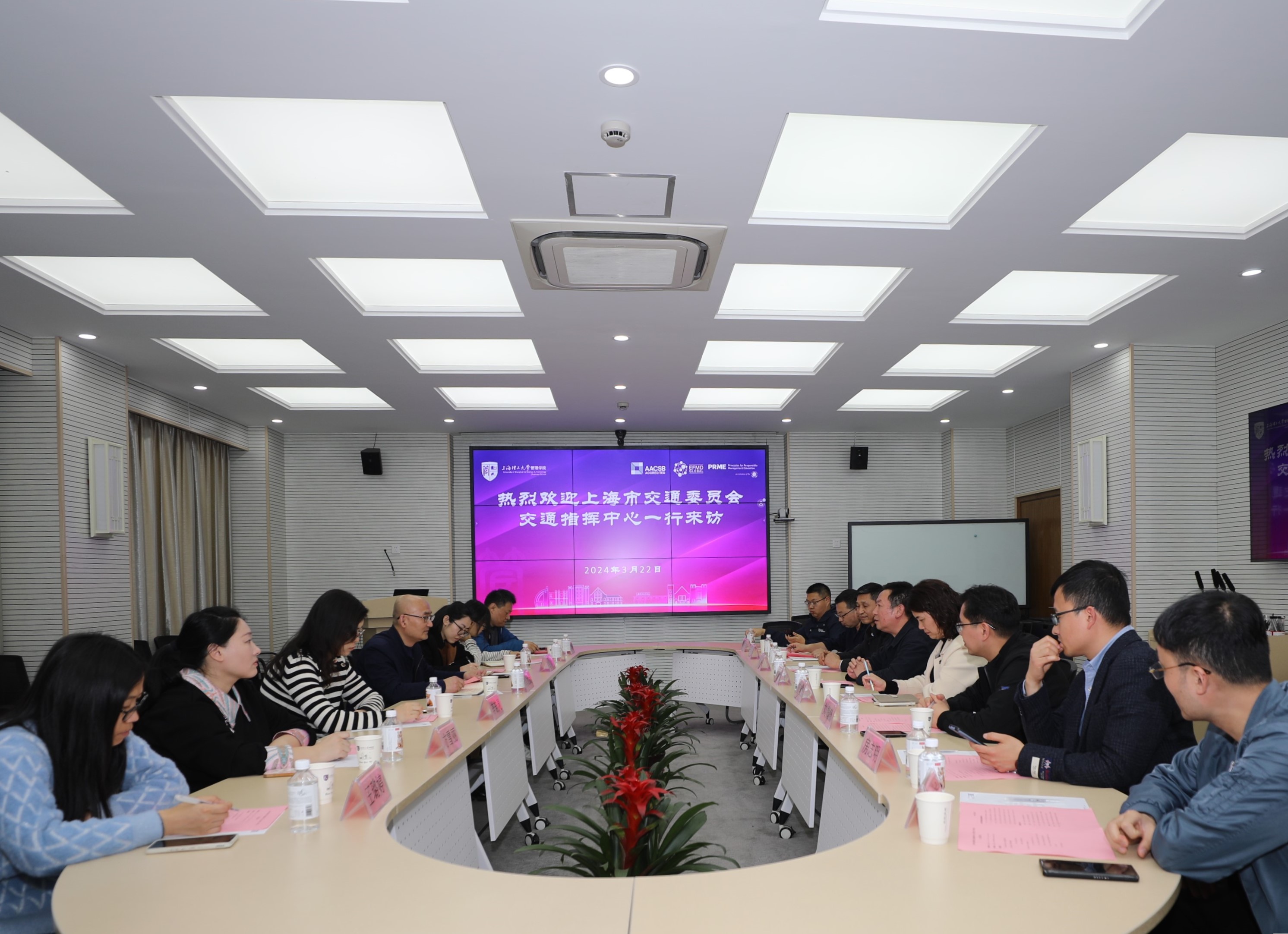 3月22日下午,上海市交通委员会交通指挥中心党委副书记冯加武一行来访。管理学院党委书记马静波、党委副书记蒲莹莹会见,智慧应急管理学院及交通系统工程系相关教师代表参加座谈。座谈会由交通系统工程系系主任刘魏巍主持。