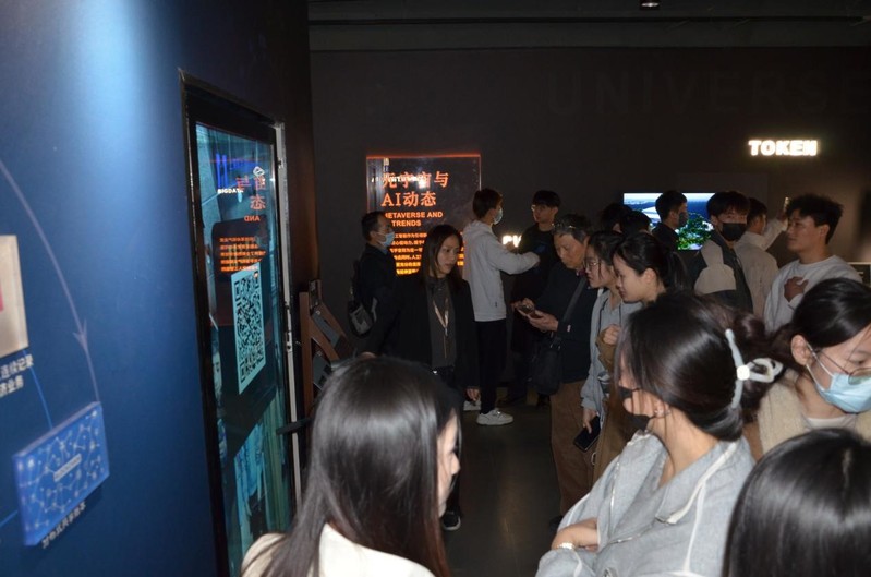 随后,同学们参观了“元宇宙与AI动态”展厅,深入了解了元宇宙与人工智能对科技金融行业的重大影响,展示了未来科技发展的巨大潜力和可能性。