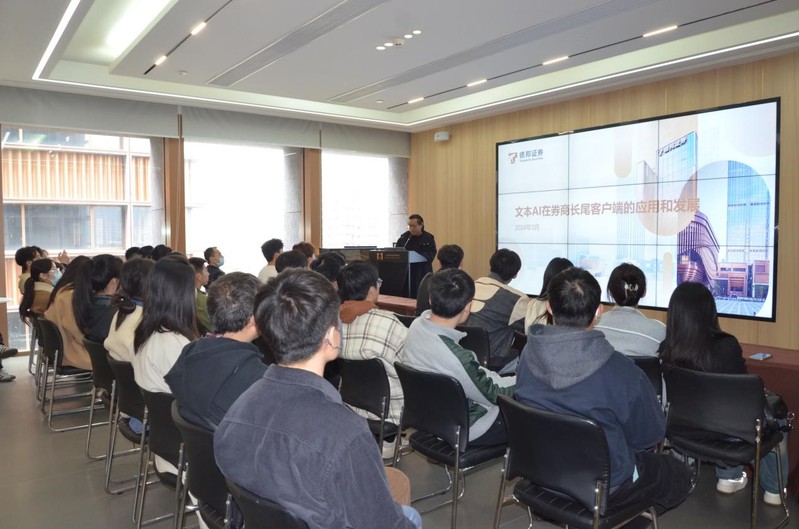 参观结束后,同学们认真聆听了来自德邦证券证券资深投行专家张曙的讲座。他以深入浅出的语言,向学生们介绍了文本Al在券商长尾客户端的应用和发展,分享了对于科技金融领域的独到见解。学生们积极提问,展现出对科技金融领域的浓厚兴趣和求知欲。