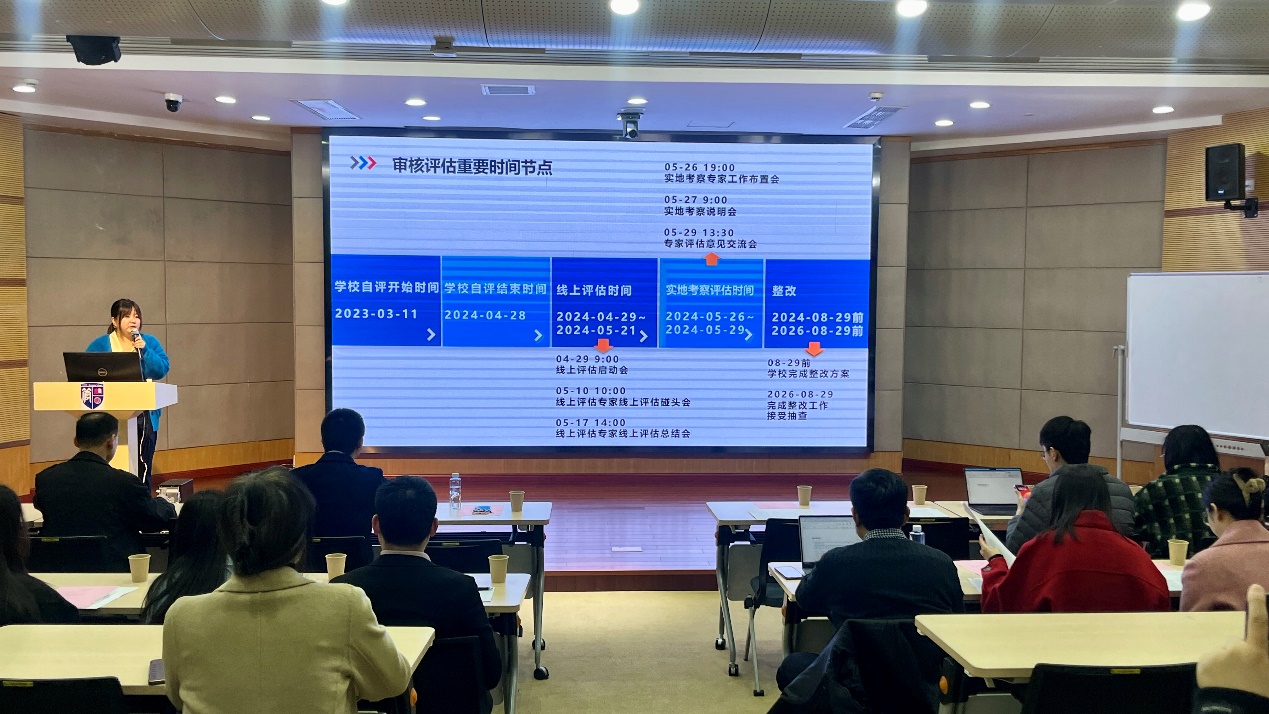 为进一步落实立德树人根本任务,全力推进本科教育教学审核评估,3月28日,学院在四楼报告厅举行了本科教育教学审核评估辅导会。教务处质量监控科科长袁馨怡应邀进行本科教育教学审核评估辅导,副院长赵靖、各系领导、系秘书、教务办成员等参加会议。会议由赵靖主持。