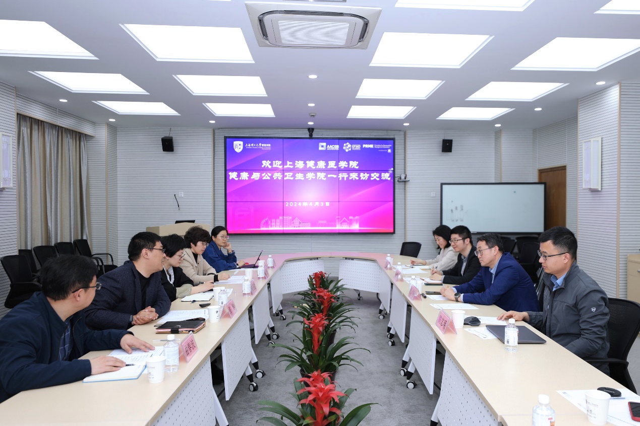 张浩对我院的热情接待表示感谢,并从专业建设与教学、学科建设与科研、对外合作与交流、学生培养与成果等方面介绍了上海健康医学院健康与公共卫生学院情况。