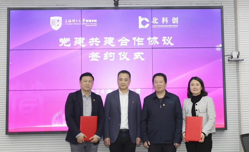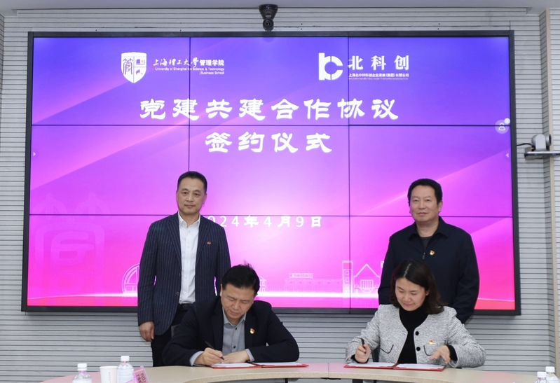 4月9日上午,管理学院党委与北科创集团党委党建共建合作协议签约仪式在经管大楼A楼506会议室举行。北科创集团党委书记、董事长许勤,党委副书记、纪委书记王培青,管理学院党委书记马静波,党委副书记蒲莹莹出席签约仪式。