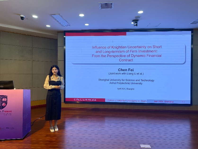 4月17日,沪江经管论坛第98期之青年学术沙龙在经管大楼A楼四楼第二会议室报告厅举办。系统科学系讲师费晨作题为“从动态融资契约视角解析模糊不确定性对企业长短期投资的影响机制”的学术报告。