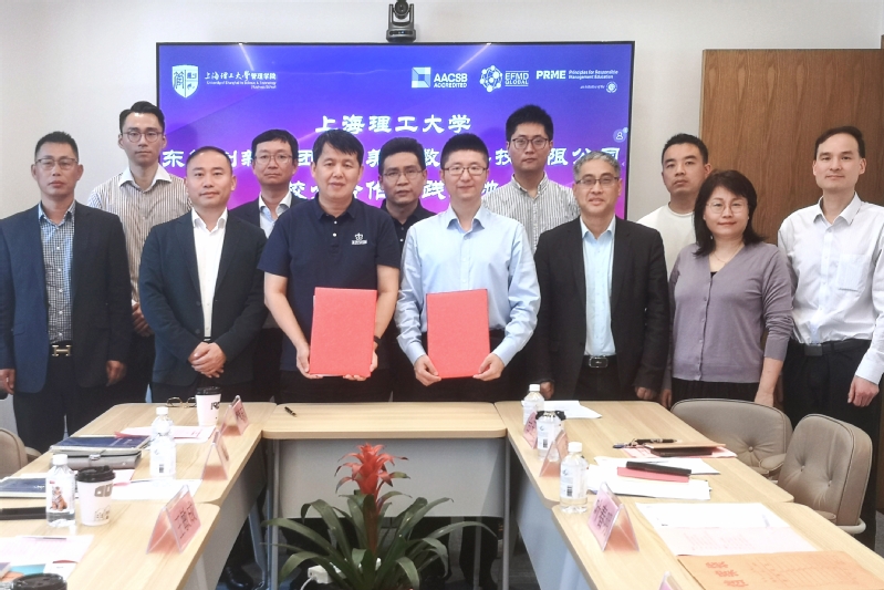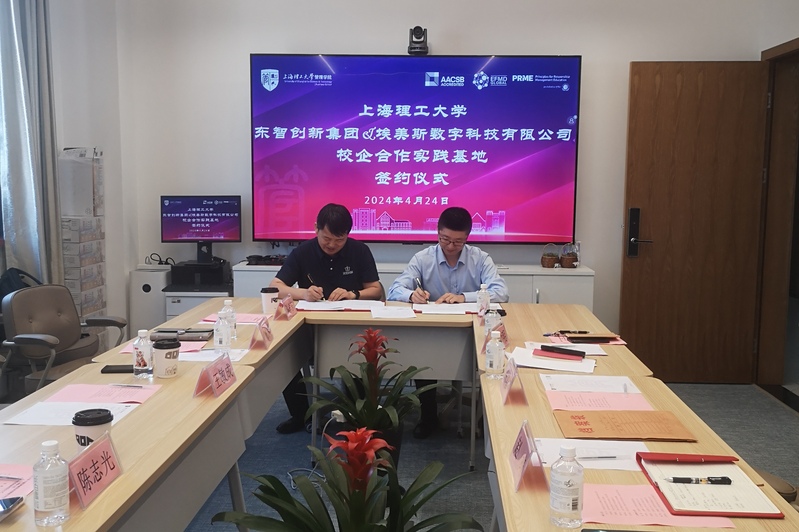 4月24日,管理学院与东智创新集团以及埃美斯数字科技有限公司举办校企合作实践基地签约仪式。东智创新集团董事长兼总经理陈志光、埃美斯总经理王敏成及企业相关领导,管理学院副院长赵靖、工程管理硕士项目主任叶春明、工业工程系主任刘勤明、教务办主任束义明、工业工程系副主任台玉红、学工办副主任袁军伟等出席签约仪式,刘勤明主持仪式。