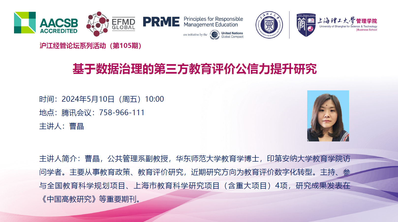 沪江经管论坛系列活动(第105期):基于数据治理的第三方教育评价公信力提升研究