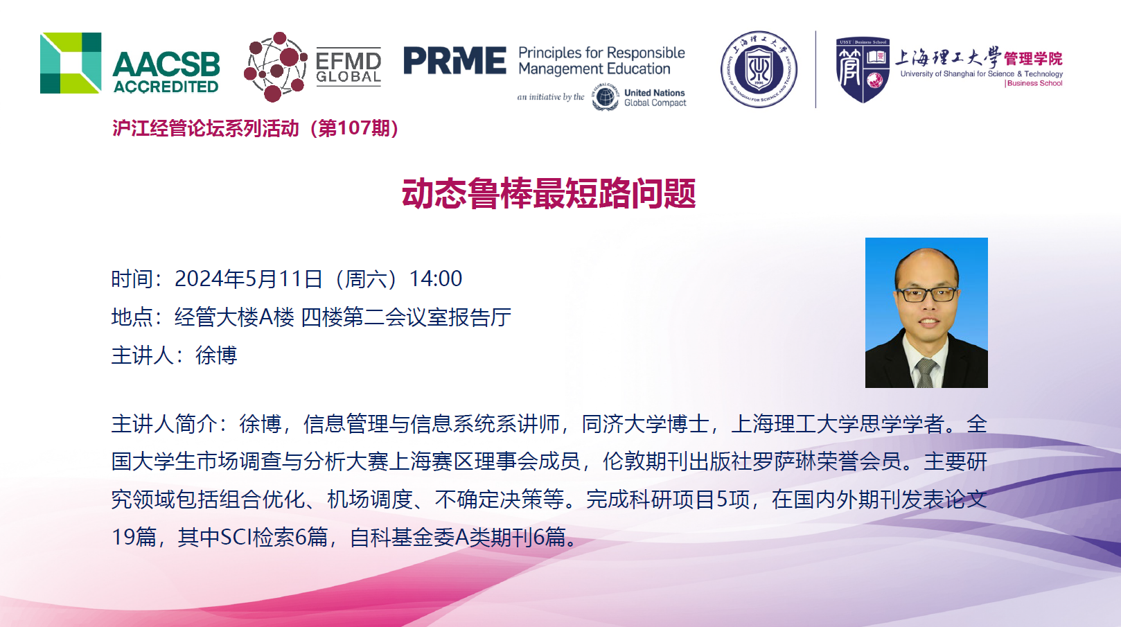 沪江经管论坛系列活动(第107期):动态鲁棒最短路问题