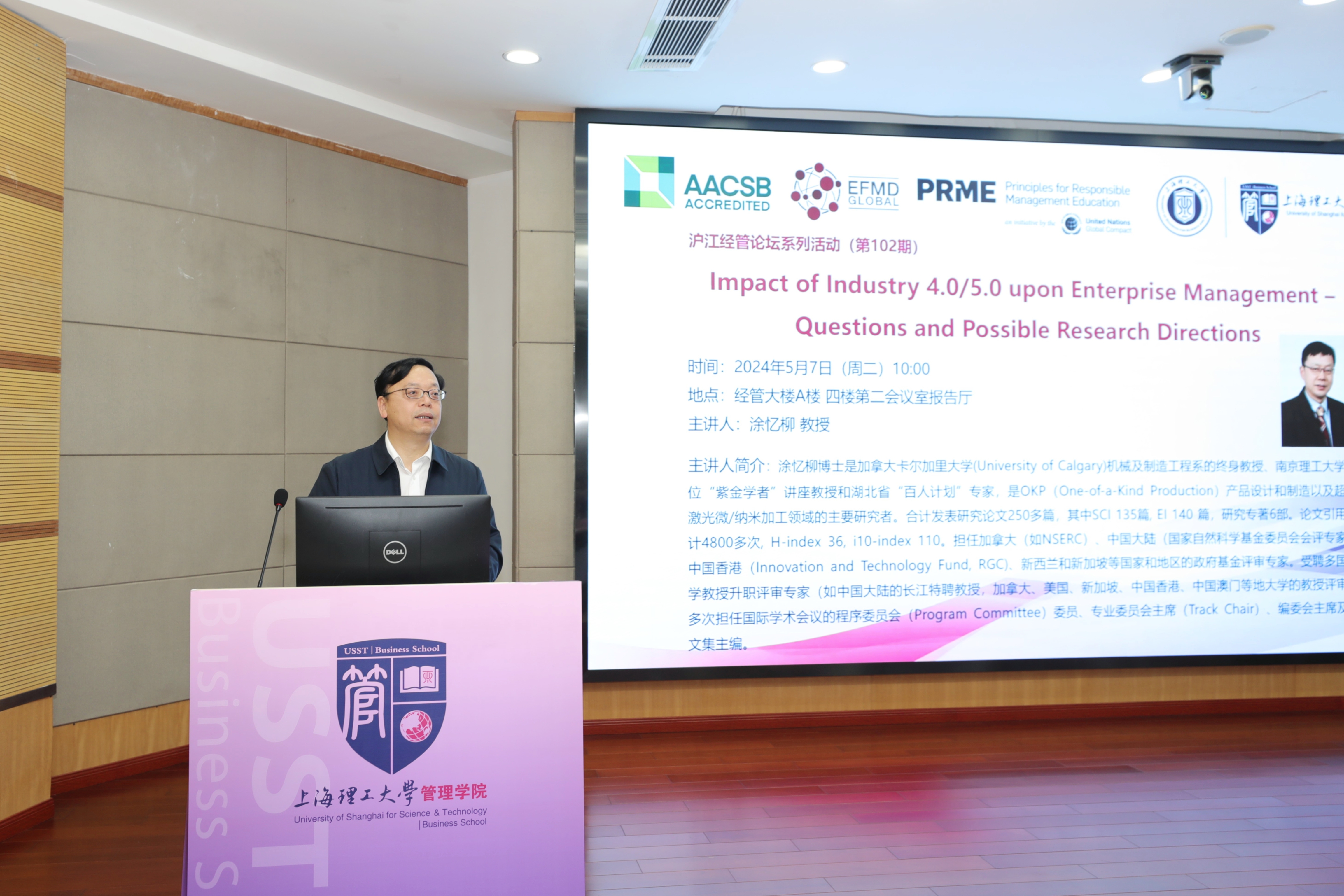 5月7日上午,管理学院邀请加拿大卡尔加里大学机械及制造工程系的终身教授涂忆柳作主题为《工业4.0/5.0对企业管理的影响--问题和可能的研究方向》(Impact of Industry 4.0/5.0 upon Enterprise Management--Questions and Possible Research Directions)的学术报告。管理学院院长赵来军、副院长张峥、国际化院务助理刘魏巍、会计系副主任黄晶、国际化建设办公室成员以及管理学院师生参加学术报告。报告由赵来军主持。