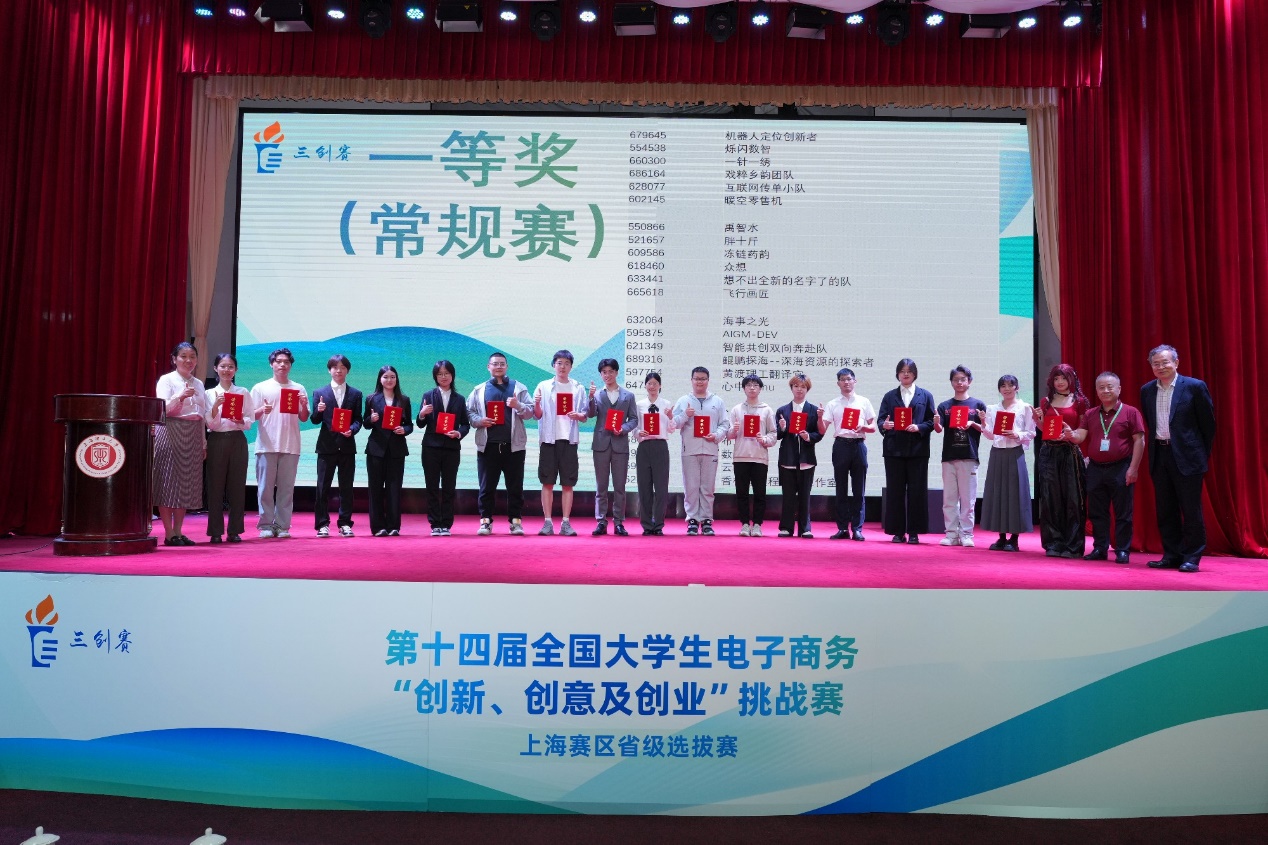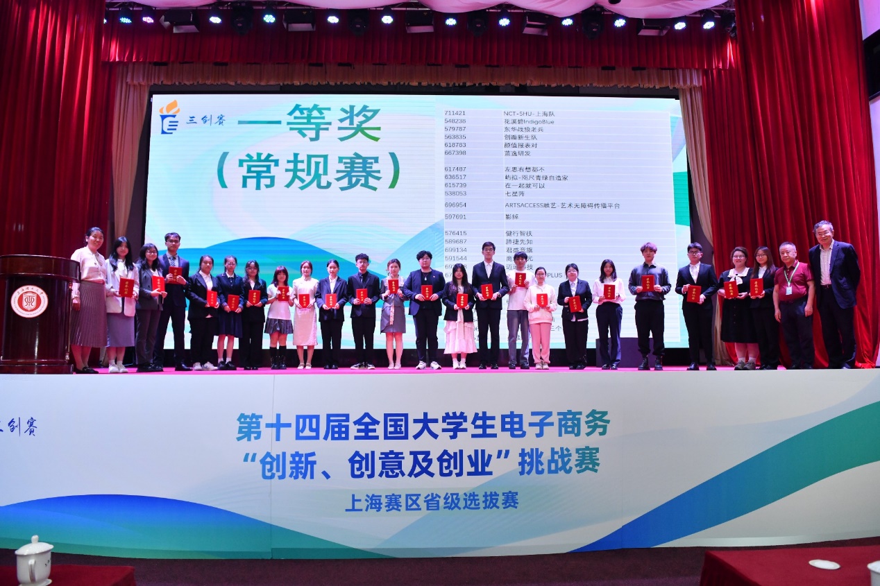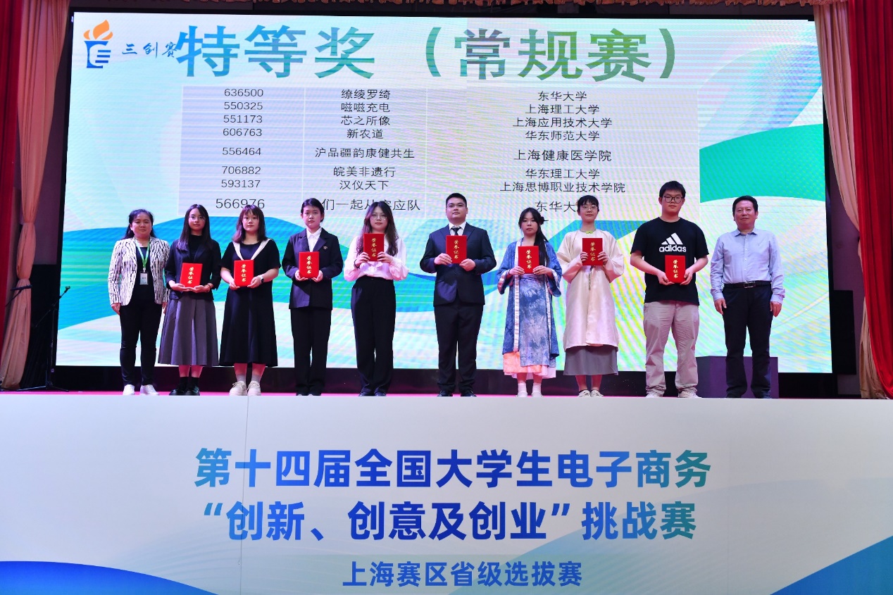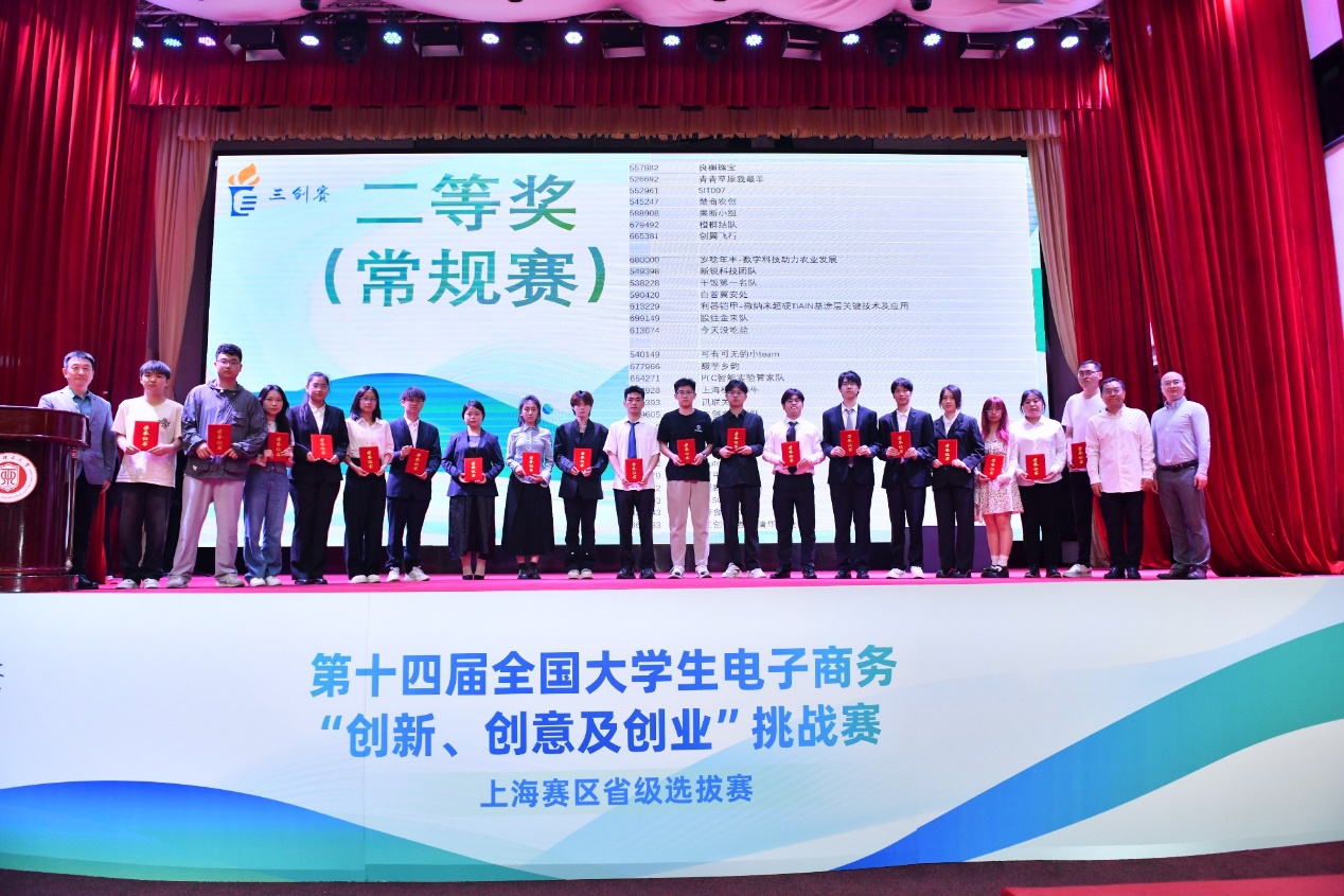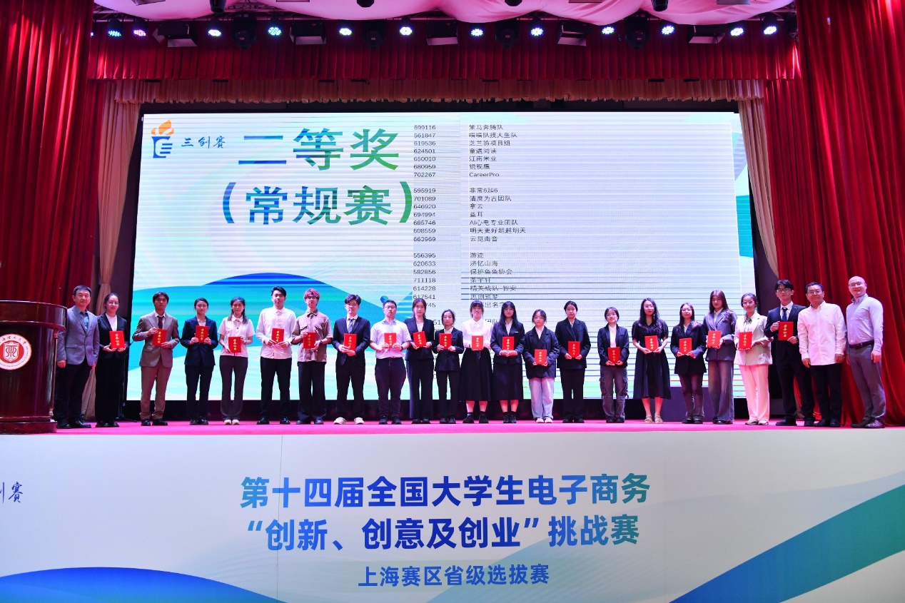 本次比赛共吸引了2400余支队伍报名参赛,经过严格的筛选和评审,最终有242支队伍脱颖而出,入围决赛现场,并分为10个组进行激烈角逐。开幕式后,开始了一天紧张和激烈的分组小组赛、终极赛环节。来自全市各高校的参赛选手们在紧张而激烈的氛围中展开比拼。每个团队都凭借精彩的演讲和答辩,充分展示了他们在电子商务领域的创新、创意和创业能力,为电子商务领域的发展注入了新的活力。评委们对参赛队伍的专业素养和团队精神给予了高度评价,并对部分优秀项目提出了宝贵的建议和指导。经过一整天的小组赛激烈比拼,最终常规赛道评选出了特等奖8支、一等奖48支、二等奖56支;实战赛道评选出一等奖11支、二等奖14支。常规赛道中诞生的8支特等奖队伍进行终极赛的角逐,充分展现他们的卓越实力。评委包括来自各个高校的30位专家和上海市电子商务和消费促进中心李鸷、上海市网购商会宋轶勤、上海市浦东新区电子商务行业协会黄昕帆、上海市直播电商联盟孙勇等30位非高校专家。