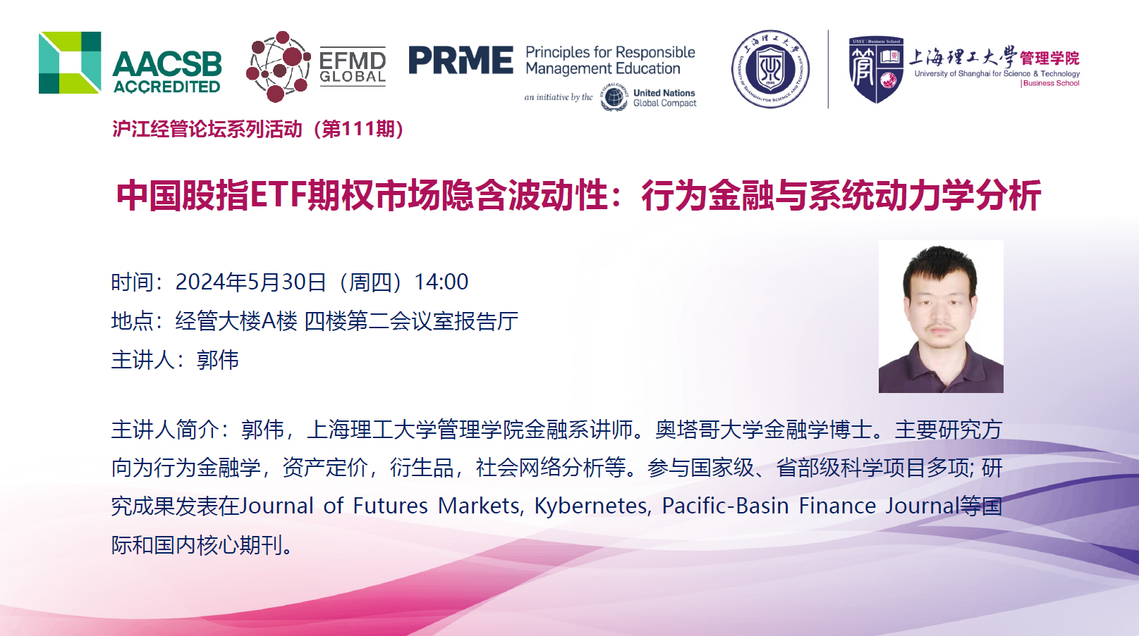 沪江经管论坛系列活动(第111期):中国股指ETF期权市场隐含波动性:行为金融与系统动力学分析