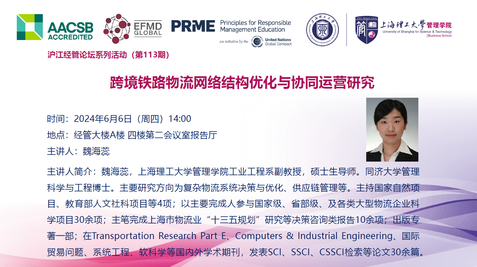 沪江经管论坛系列活动(第113期):跨境铁路物流网络结构优化与协同运营研究