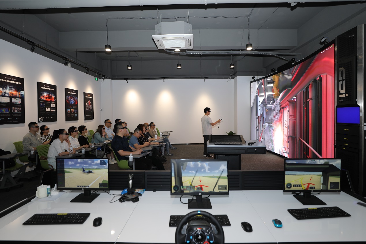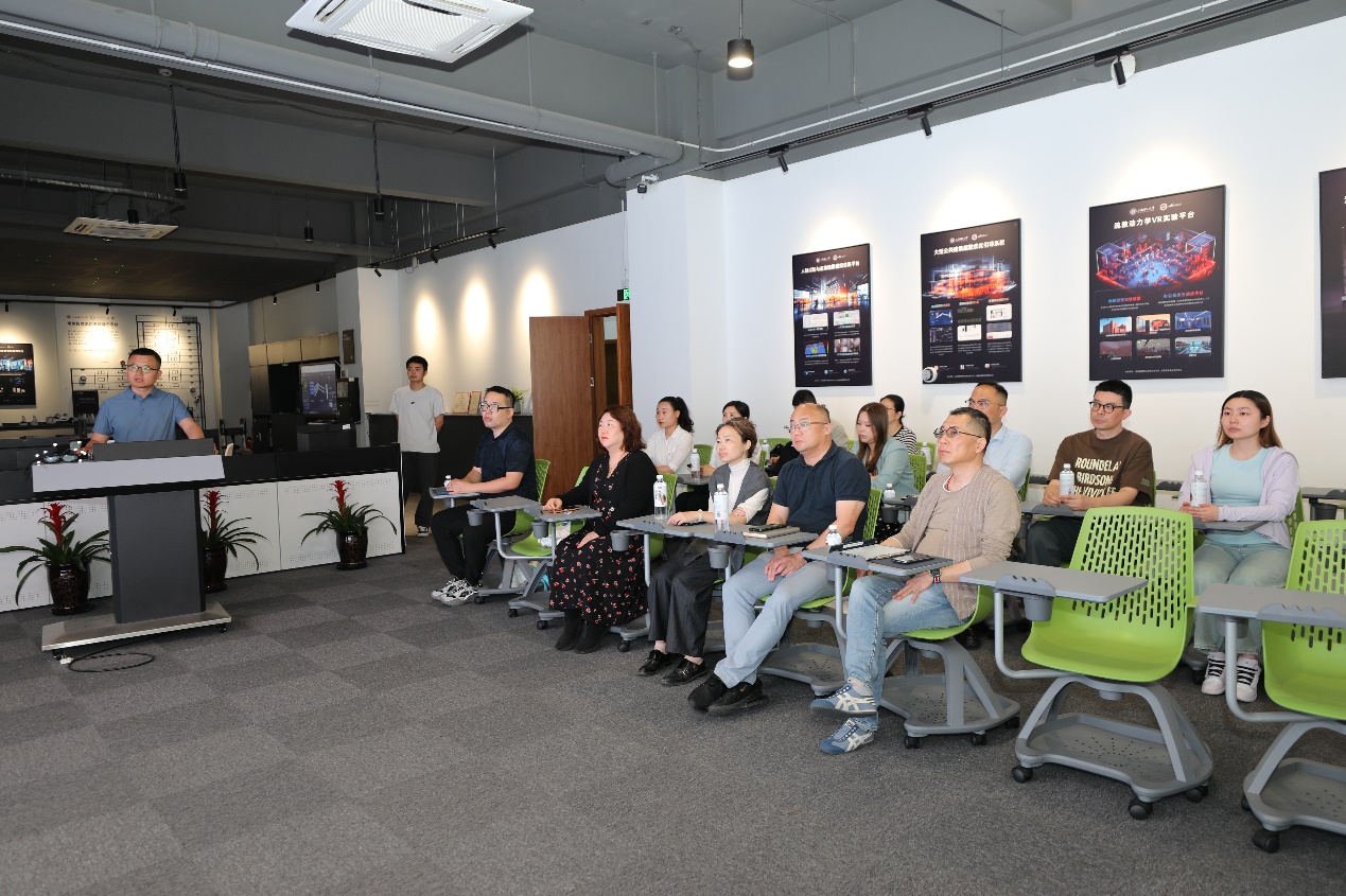 北科创集团一行参观了智慧应急管理学院实验室虚拟现实交互装置与实验平台,观看了智慧应急交通实验平台和智慧安全生产实验平台的演示,体验了虚实结合的突发事件下人群疏散实验平台。