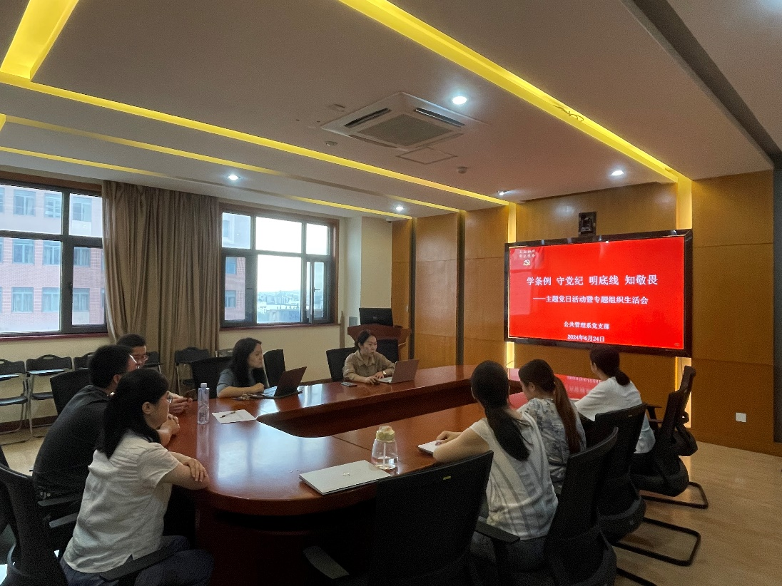 加强纪律建设是全面从严治党的治本之策。为了深入学习领会习近平总书记关于党纪学习教育的重要讲话和重要指示精神,深刻把握《中国共产党纪律处分条例》的内容和要求,切实增强遵规守纪自觉,公共管理系党支部根据上级党委的相关要求,结合自身实际,6月24日开展“学条例守党纪明底线知敬畏”的主题党日活动暨专题组织生活会。活动由参观学习和集中研讨两部分组成。