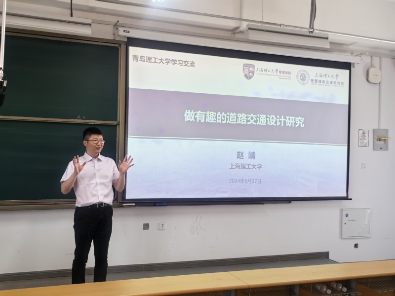 6月27日下午,韩印、赵靖等率队赴青岛理工大学进行了研究生招生宣传会。宣讲会上,韩印深入浅出地为同学们对我校的主要概况进行介绍,并注重从交通运输工程学科发展的历史沿革、学科机构设置、培养体系等方面介绍了学科的学术影响力、未来发展的发展规划等。赵靖以“做有趣的道路交通设计研究”为主题,分享了自身的科研历程和主要的研究领域方向,为在场师生作了一场精彩的报告。