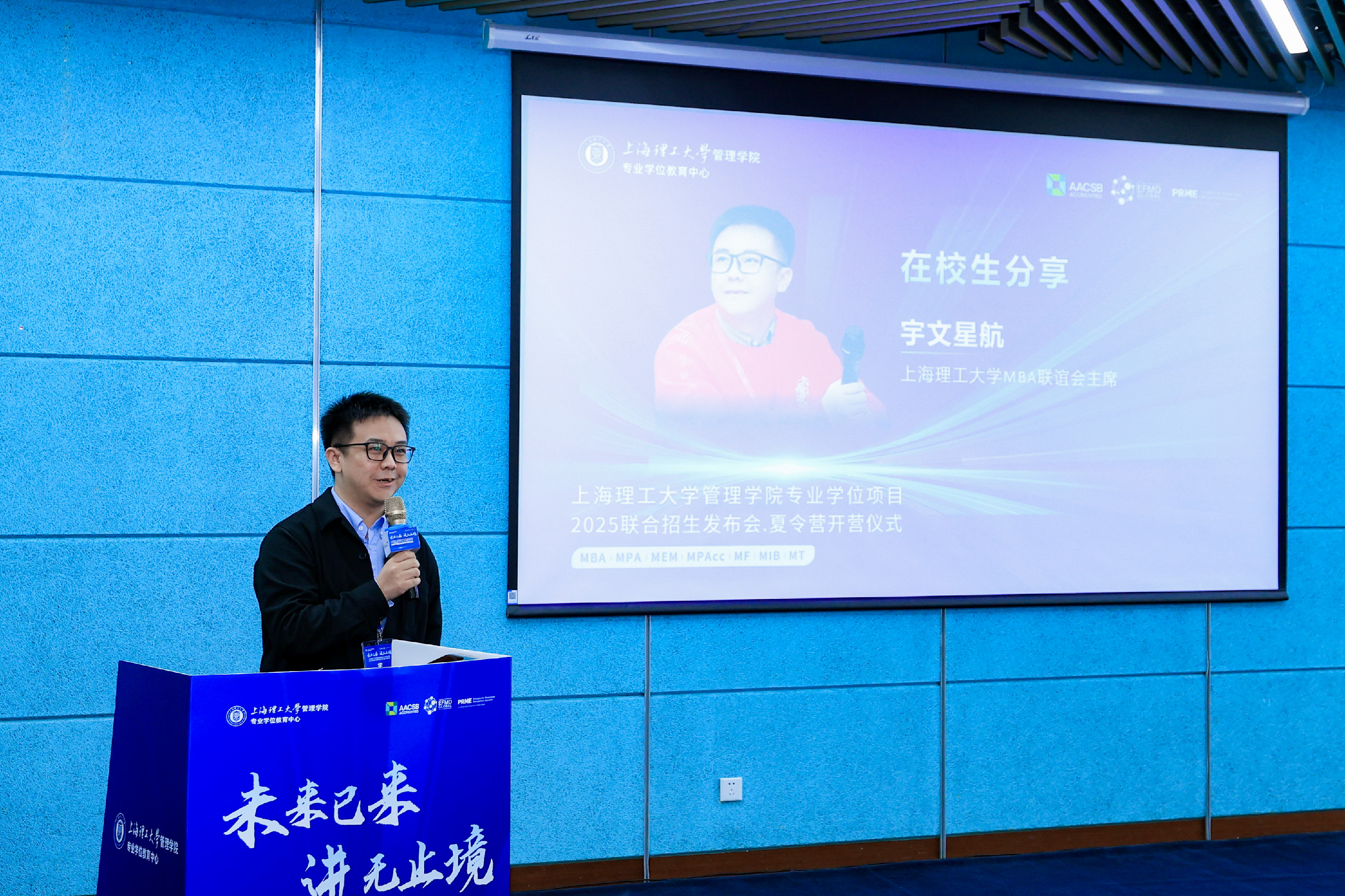 MBA联谊会主席宇文星航,以《在上理的这一年》为题,分享了他在校的独特经历。他表示,上理不仅承载着深厚的文化底蕴与百年的商学积淀,更以小班化精品教学模式著称,汇聚了强大的师资力量和卓越的学科实力。在这里,学费性价比高,学制紧凑且竞争激烈,奖学金制度健全,为同学们提供了坚实的支持。校园生活丰富多彩,从美食到住宿,无一不体现出学校的贴心关怀;活动多样,参访实践与党建学习并行,拓宽了视野,深化了思想。他寄语学弟学妹们,应勇于自我探索,理性面对选择,明确个人目标,合理规划学习与生活,同时注重身心健康。他满怀热忱地期待,明年9月能与更多优秀的同学相聚在上理!