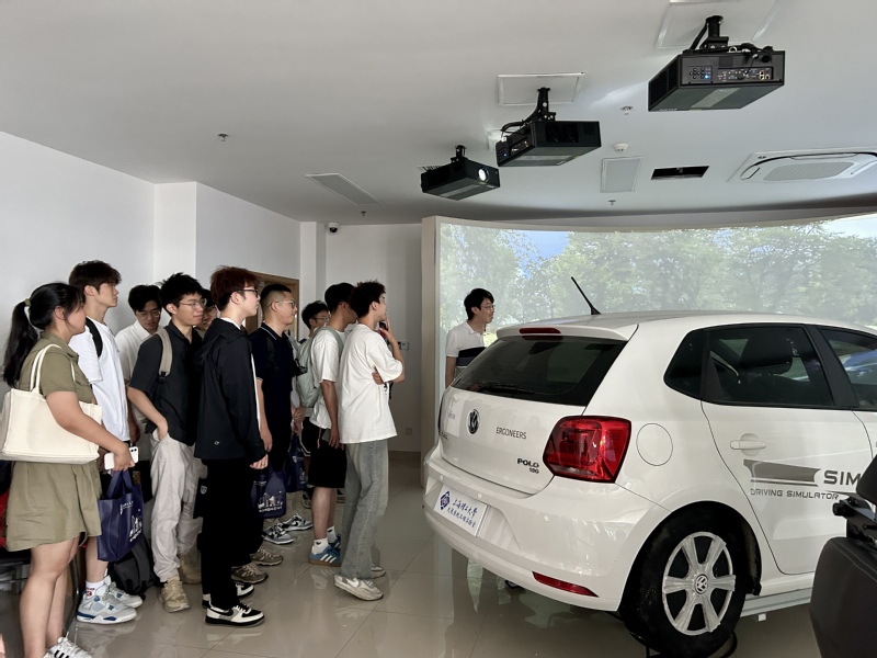 讲座结束后,王嘉文带领参营同学参观交通系统驾驶模拟实验室,向同学们介绍基于三自由度驾驶模拟器的相关研究工作。