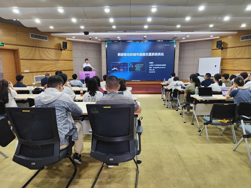 开营仪式后,王嘉文作题为“数据驱动的城市道路交通系统优化”的学术讲座,通过实例融合介绍了城市道路交通系统数据和管理策略的发展,然后结合自己的研究成果,对数据驱动的城市交通管理系统框架、城市网络交通诊断以及优化等方向进行了详细的阐述。李文翔作“‘双碳’目标下城市交通低碳转型理论与实践”的学术讲座,对城市低碳交通的研究背景、本质等内容进行介绍,之后结合自己的研究成果,从城市交通碳排放计算与评价、共享交通管理决策与优化调控、交通碳交易机制创新与应用角度对城市交通低碳转型的理论与实践进行了介绍,帮助营员们了解城市交通的可持续发展方向。