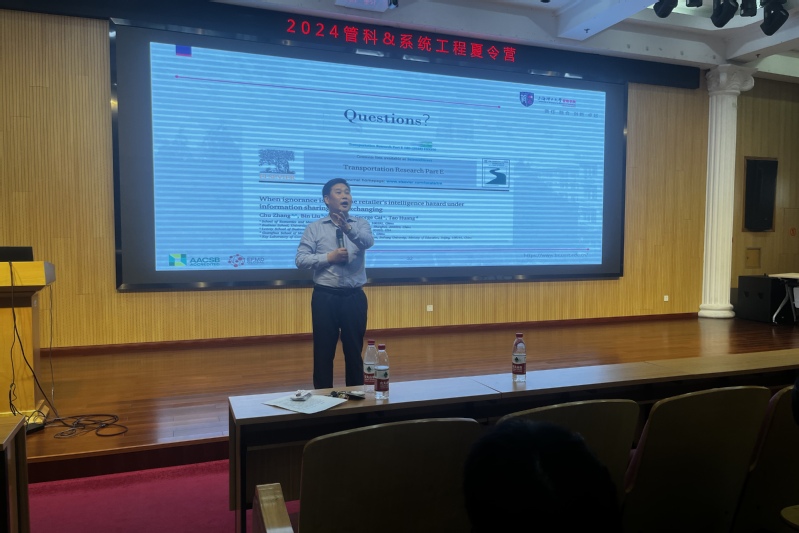 下午,刘斌为大家做题为《Whenignorance is bliss: The retailer's intelligence hazard under informationsharing and exchanging》的学术讲座,介绍了在一个由两个相互竞争制造商和一个共同零售商组成的供应链中,零售商的智力对企业在信息共享和信息交换方面的激励的影响。许多学生对此表示了极大的兴趣,提问接连不断,反响热烈。