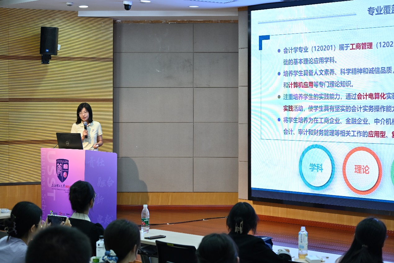 工商管理系支部书记鲁虹介绍了工商管理系的概况、教学科研状况、师资队伍,强调了工商管理一流本科专业的特点。会计系副系主任黄晶介绍了会计系概况、教学科研状况、师资队伍。